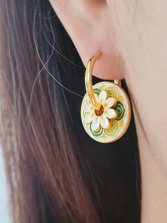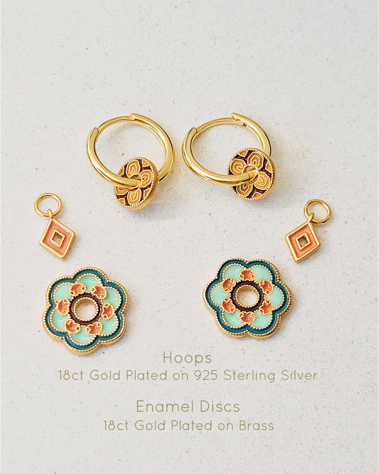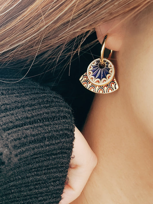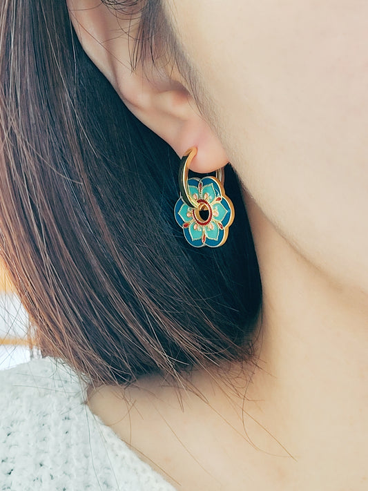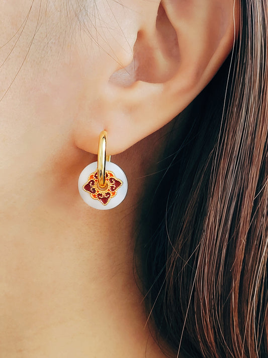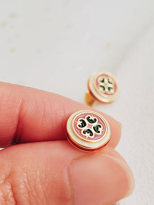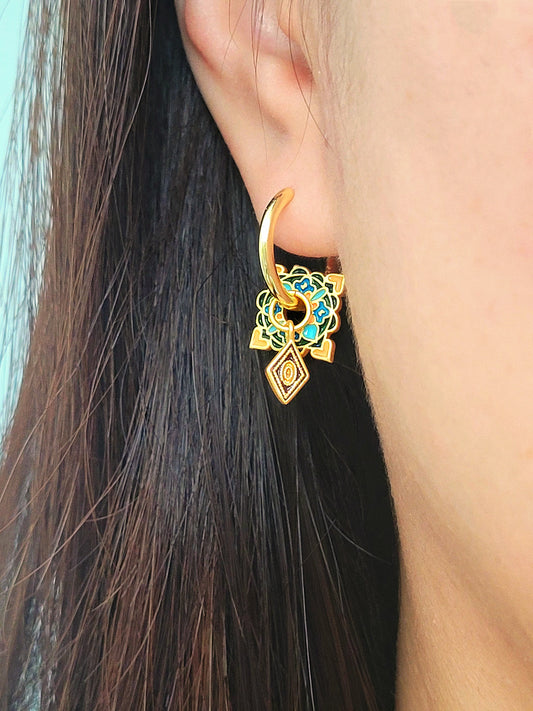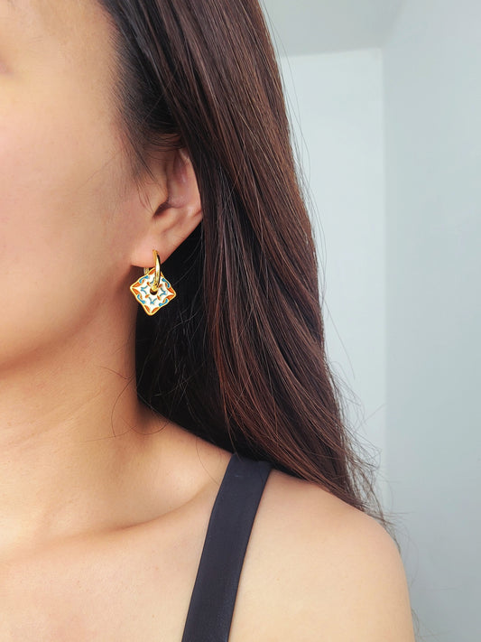 Shop our signature Tile Pattern Vintage-style earrings, exquisite design with had painted enamel.