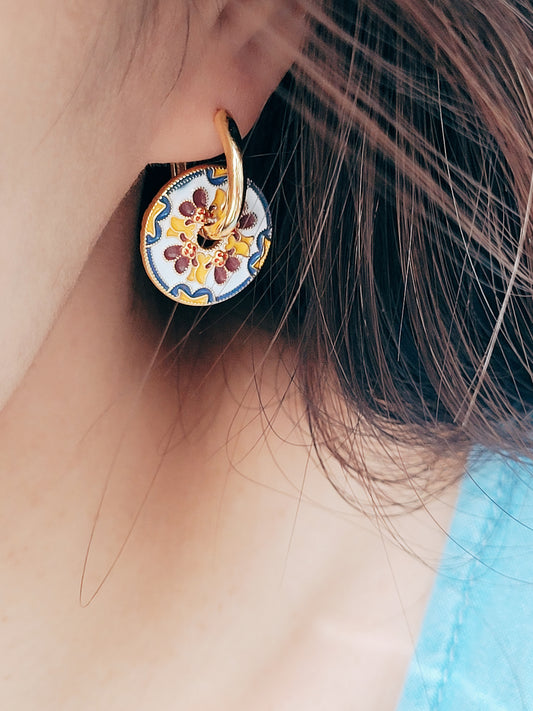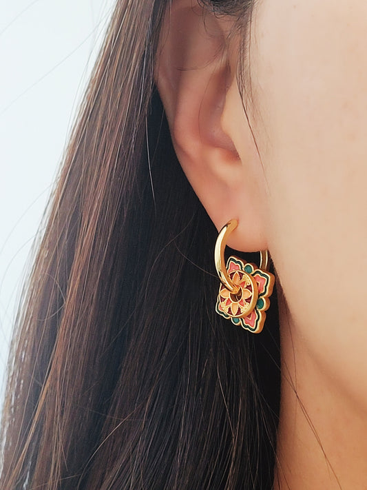 Retro Tile Flower Hoop Earrings