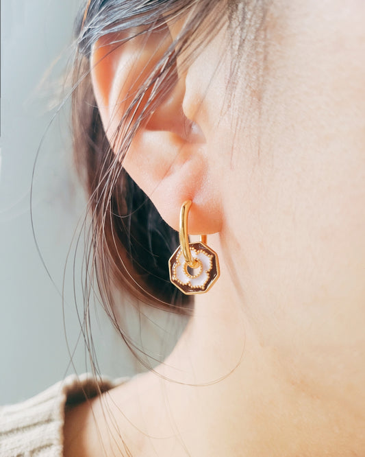 Enamel White Drop Hoop Earrings | Brown & Orange Tile