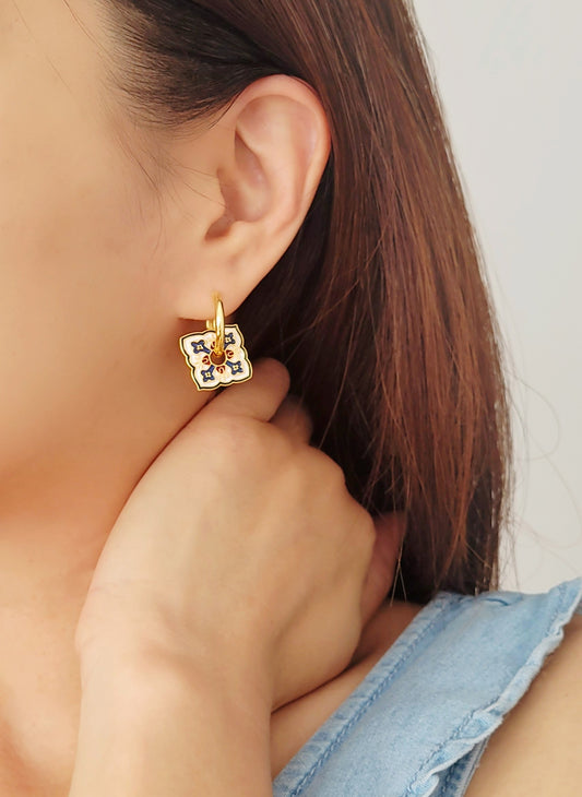 Enamel Earrings Square Tile Pattern