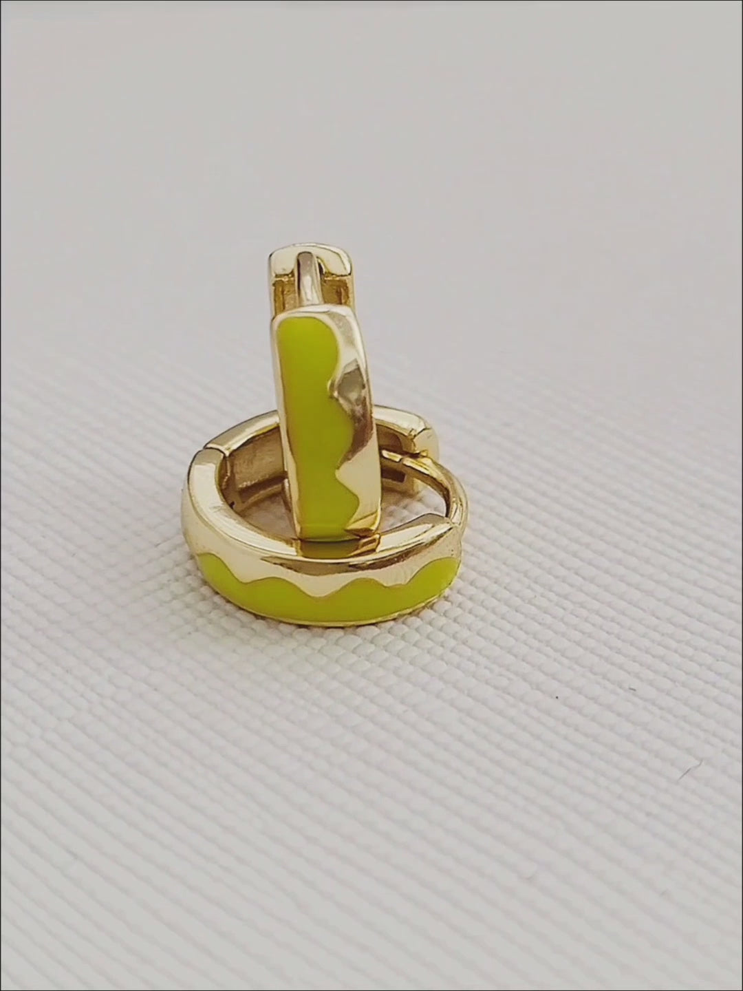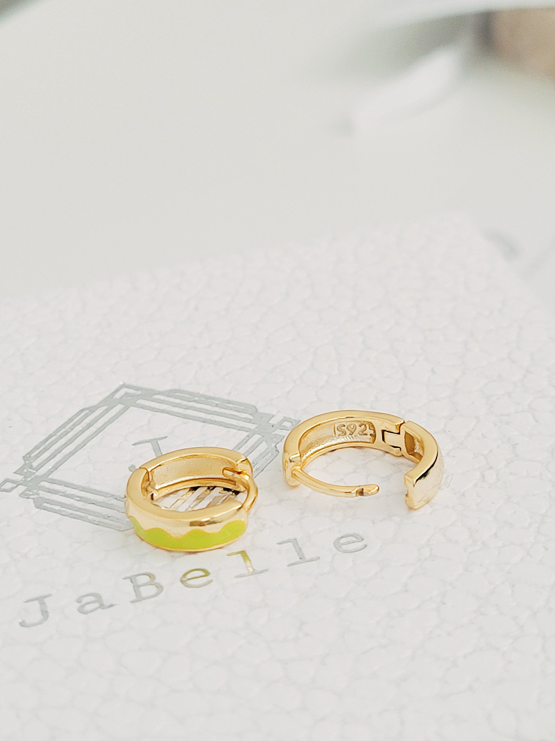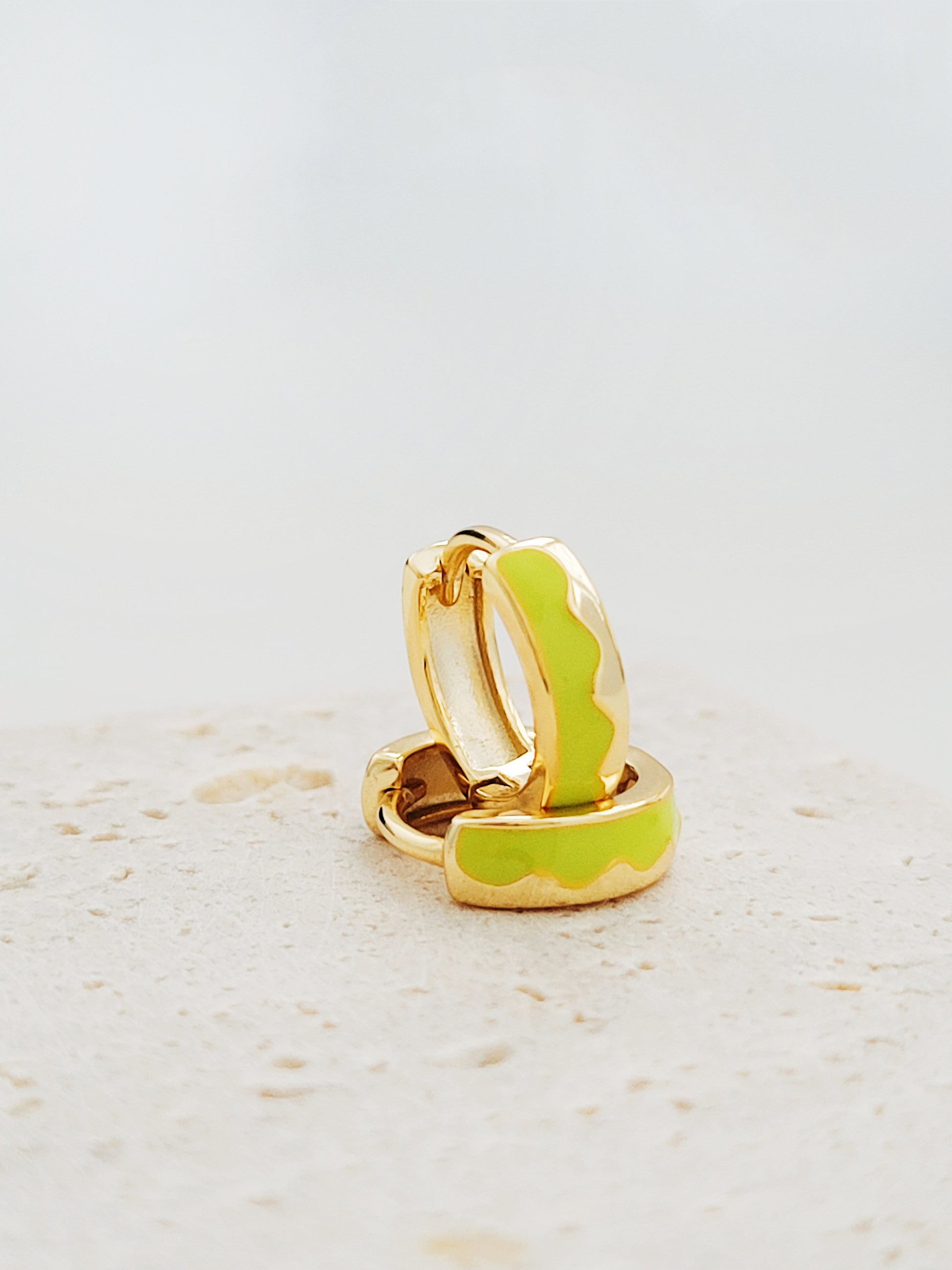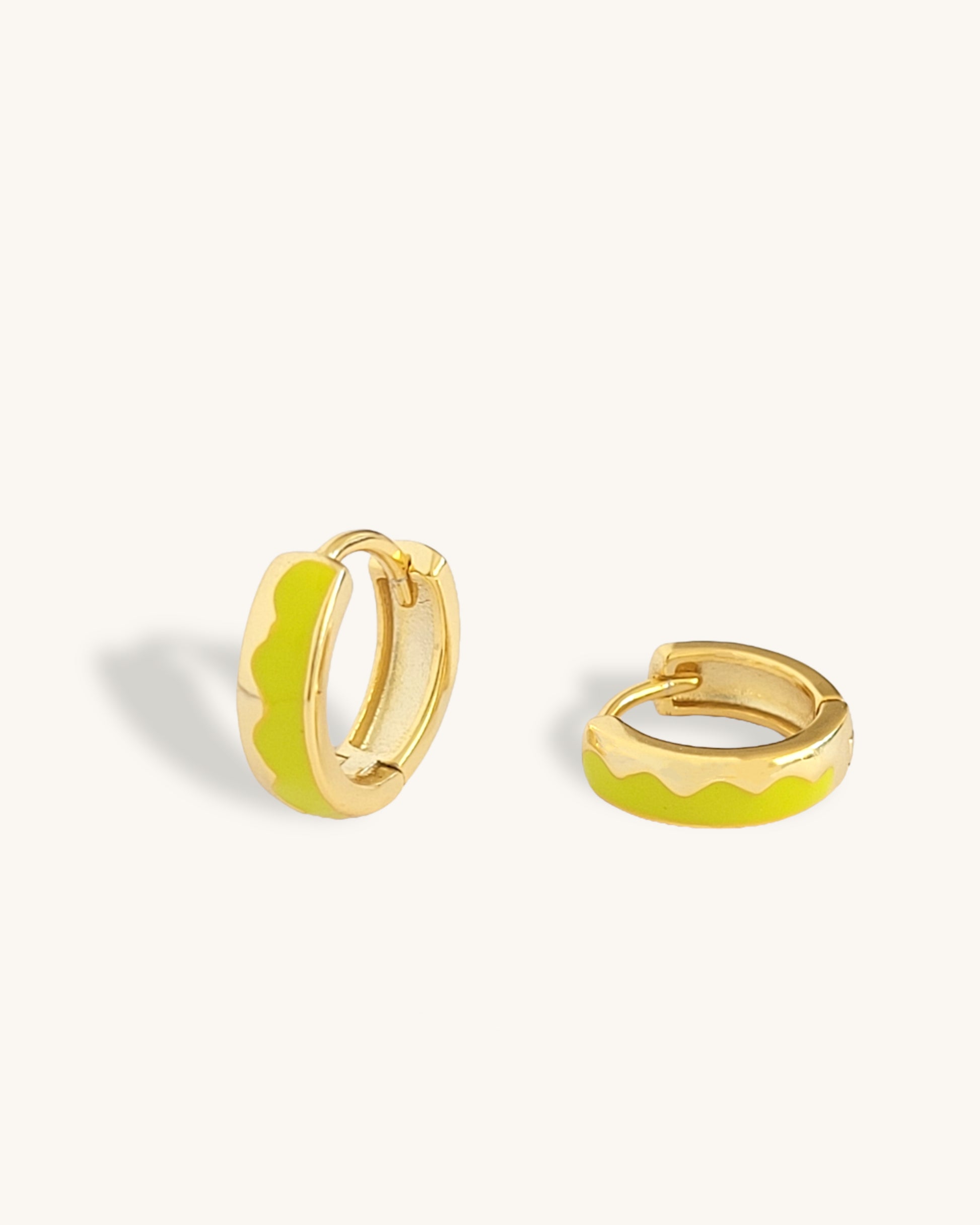 Green or Orange or Pink or Lime? Pick your favorite color! These pairs of huggies are sure to brighten you up. Crafted in 100% 925 Sterling Silver and plated with a thick layer of 18K Gold.