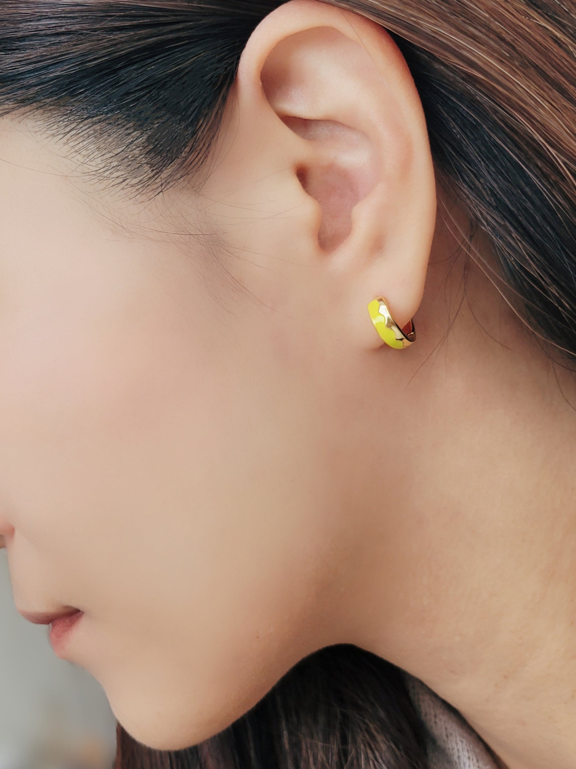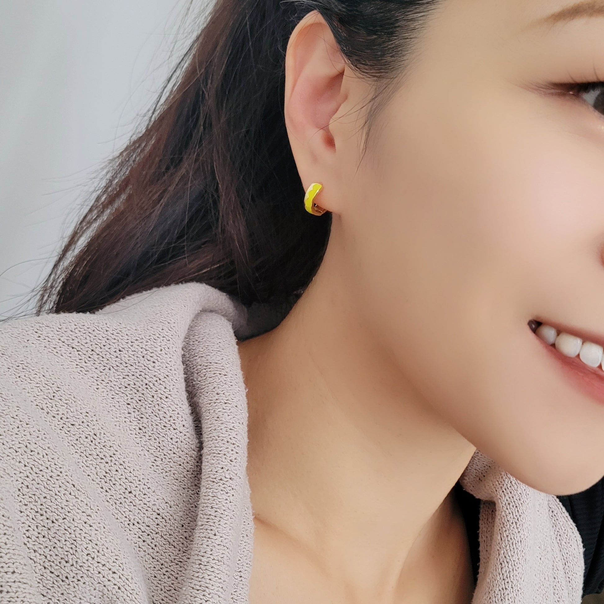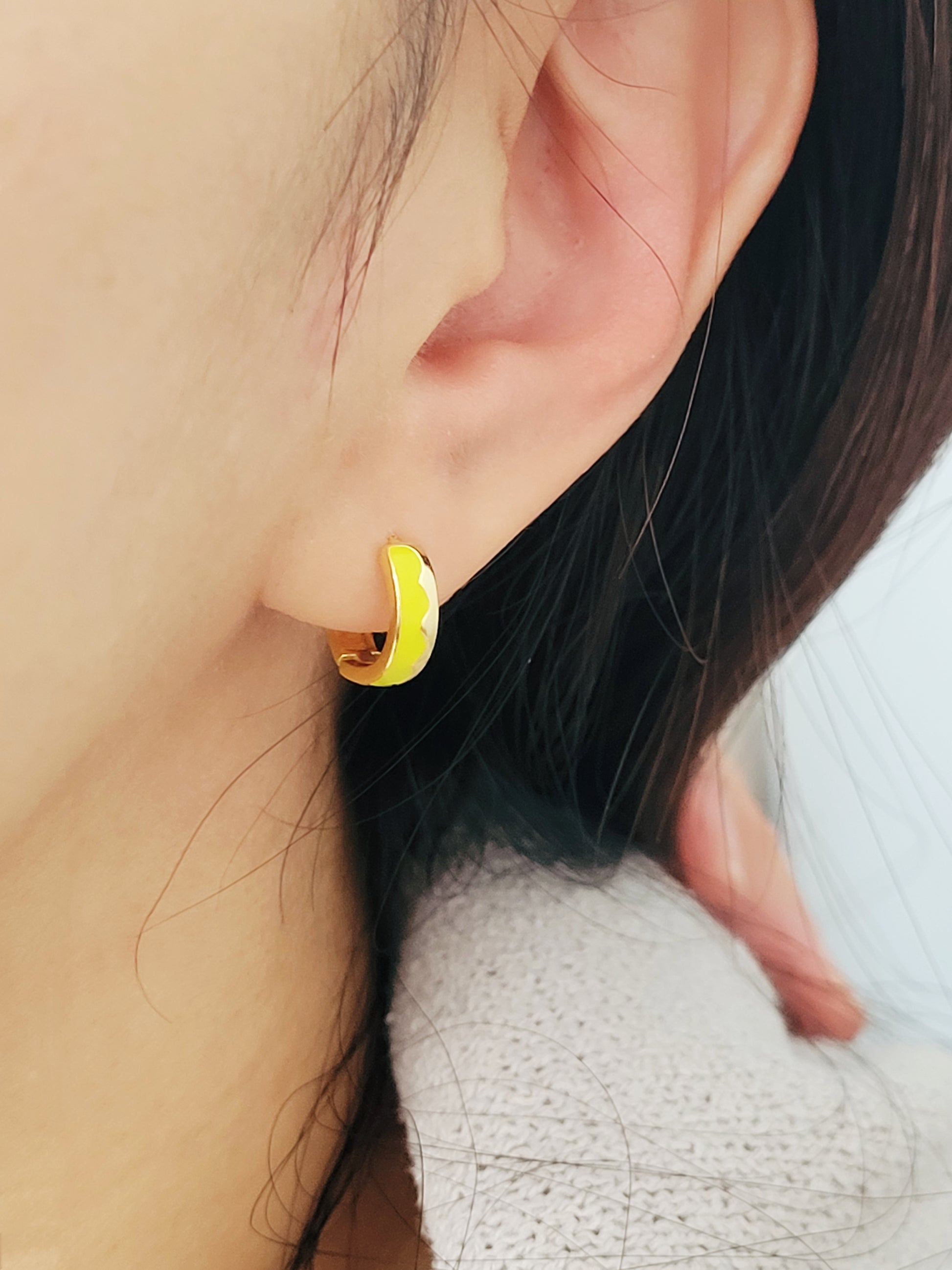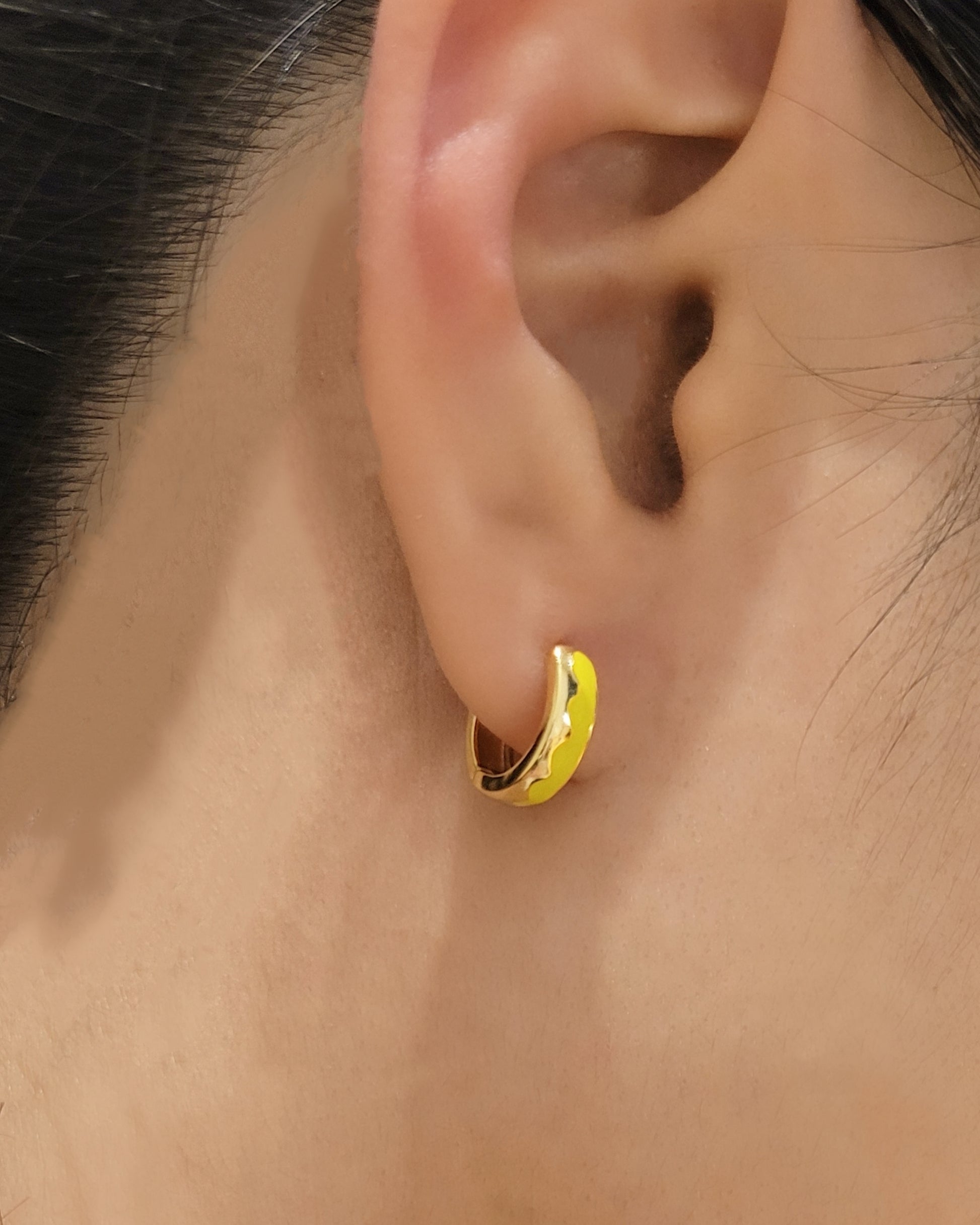 Green or Orange or Pink or Lime? Pick your favorite color! These pairs of huggies are sure to brighten you up. Crafted in 100% 925 Sterling Silver and plated with a thick layer of 18K Gold.