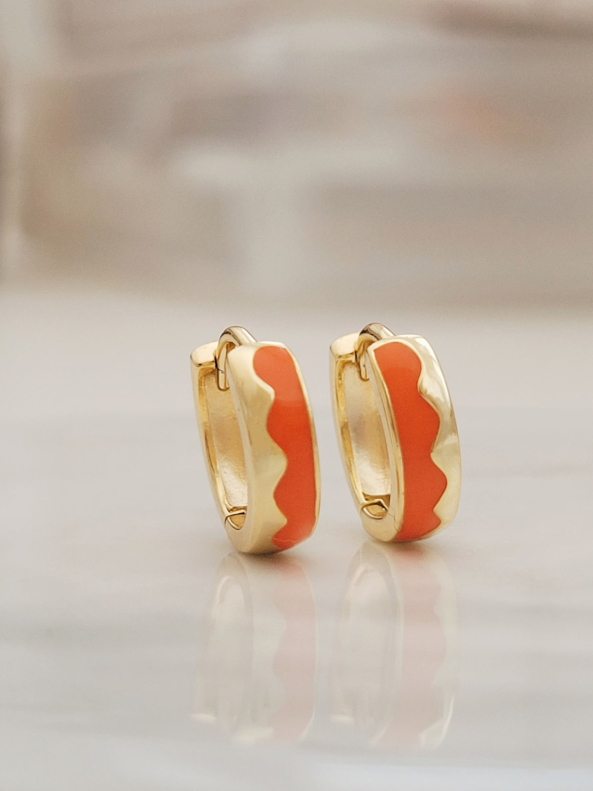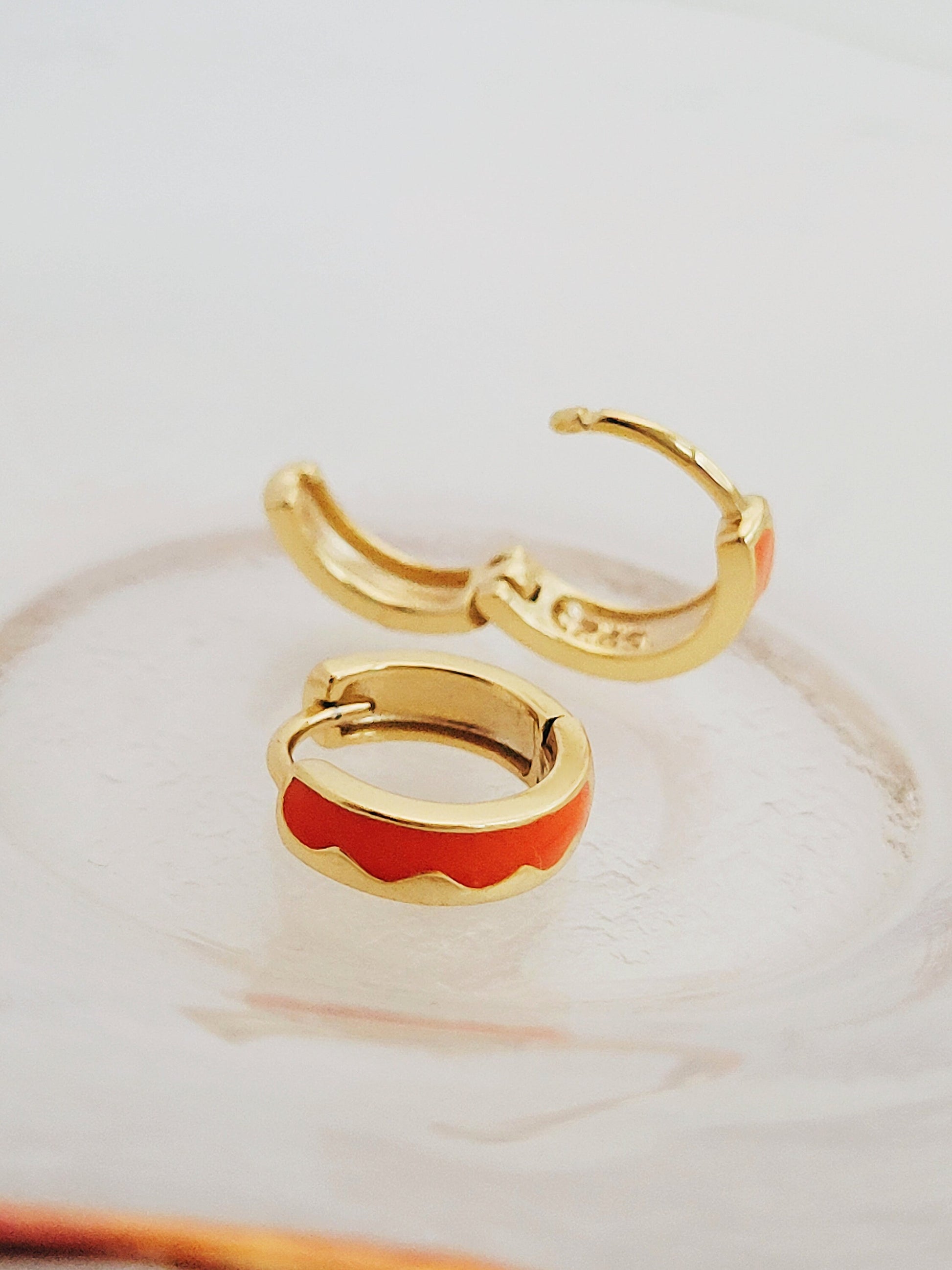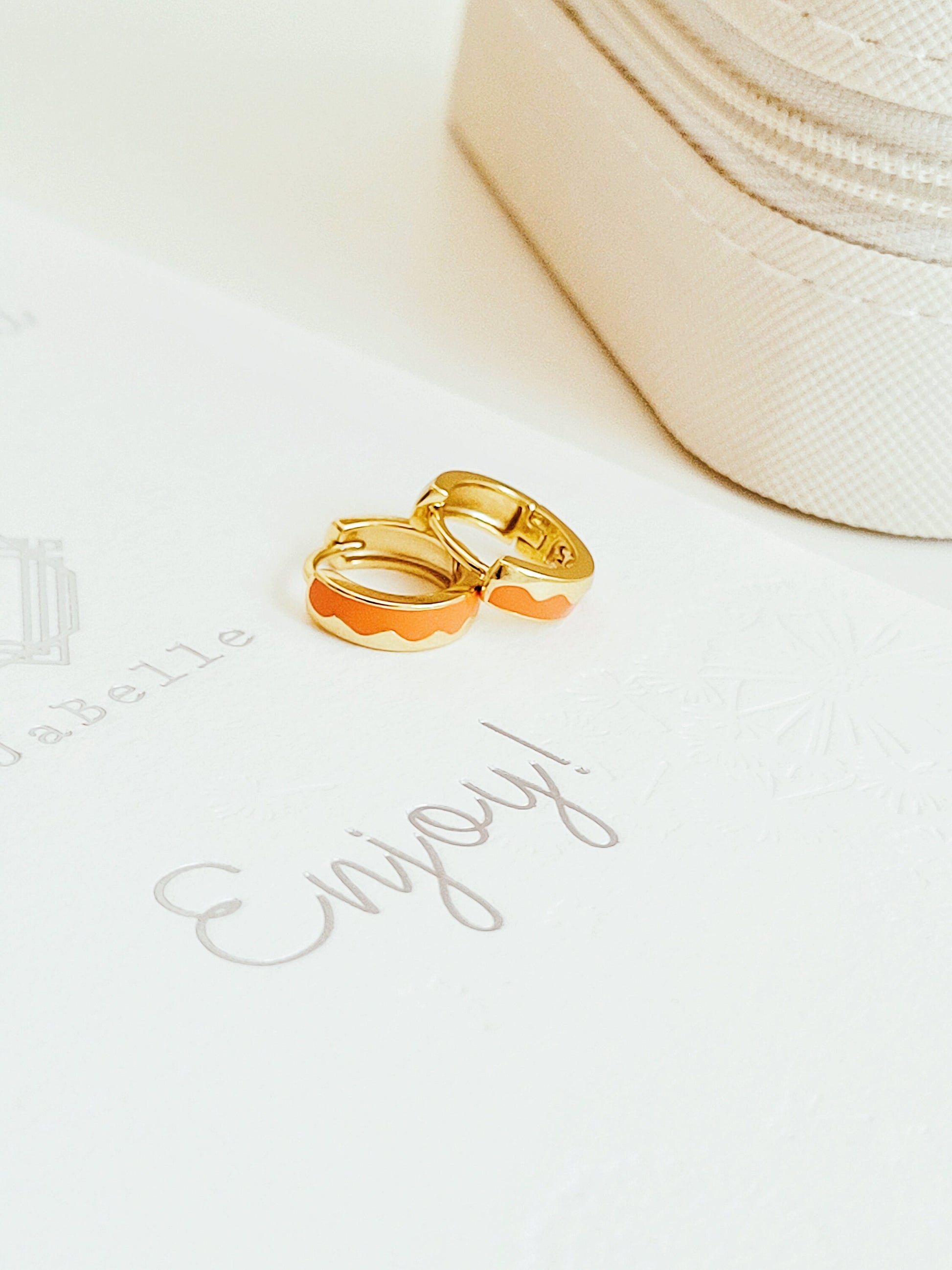 Green or Orange or Pink or Lime? Pick your favorite color! These pairs of huggies are sure to brighten you up. Crafted in 100% 925 Sterling Silver and with 18K Gold plating.