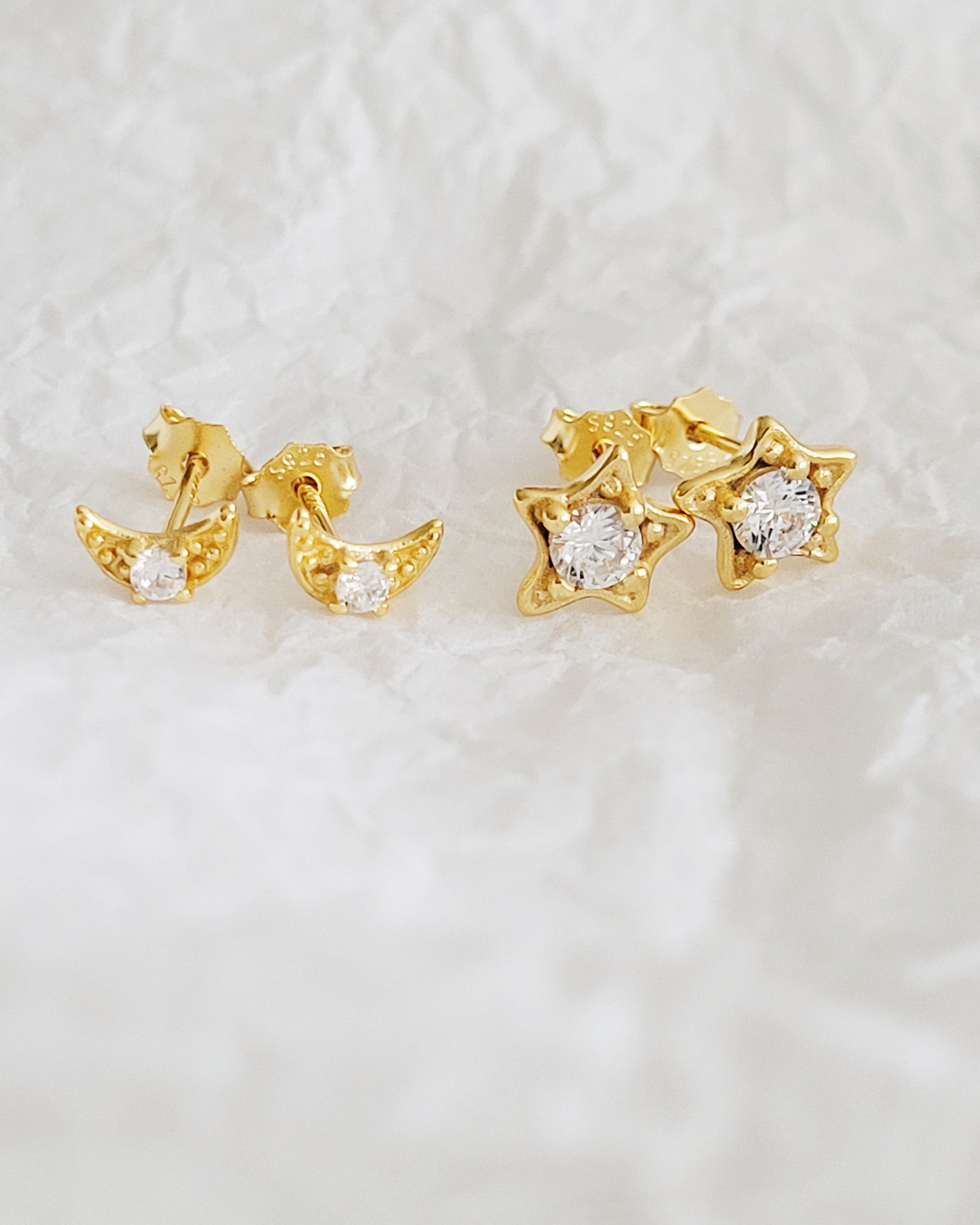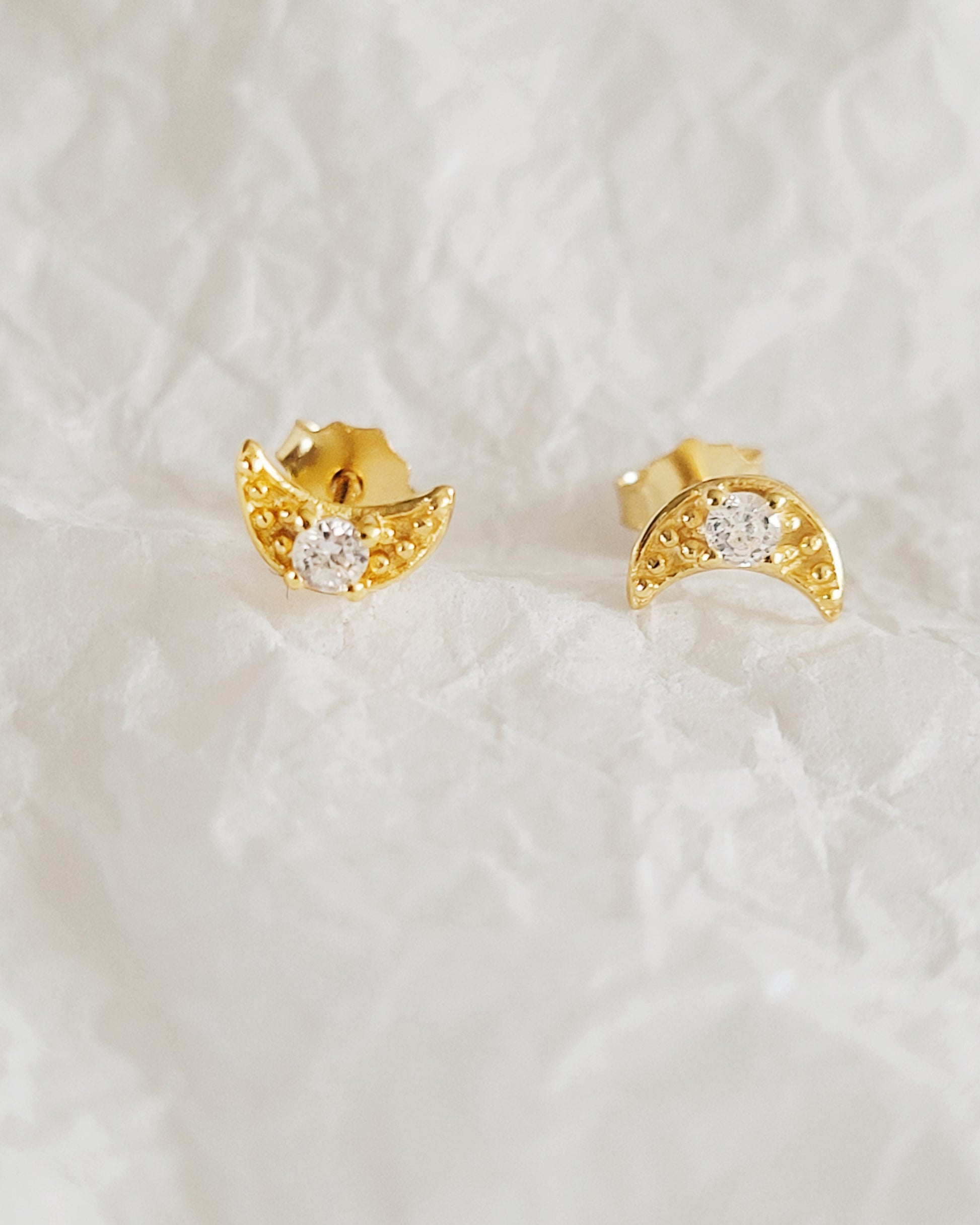 A gift or treat for those that love elegant and timeless pieces of jewellery. The simply beautiful Crystal Crescent Earrings are made from high quality 925 sterling silver with 18ct gold plating. Beautifully moon-shaped and set with cubic zirconia stone at the centre.