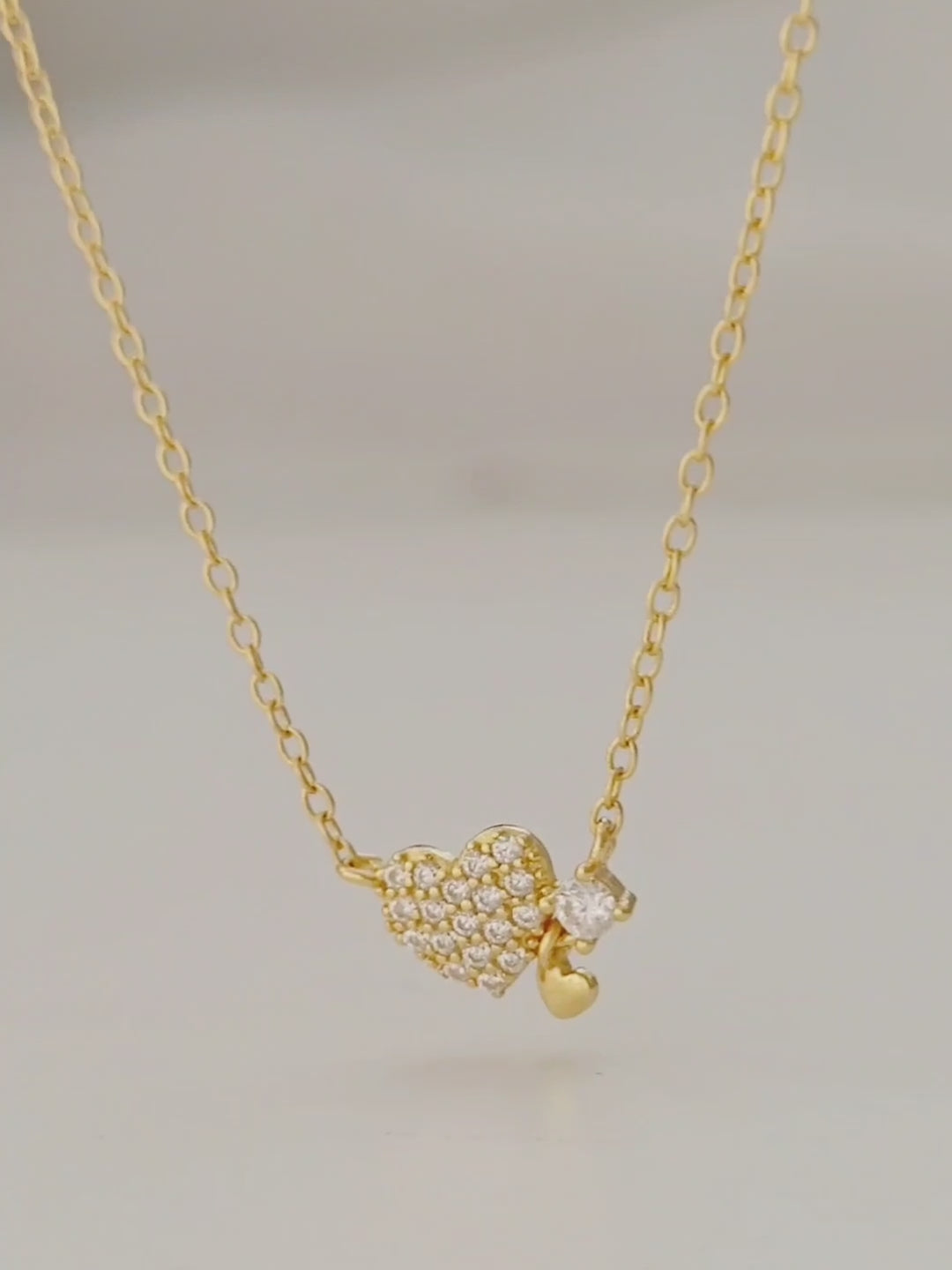 This dainty gold heart charm necklace features two stunning heart charm with diamond accent in minimalist design. Perfect gift idea for daughter or girlfriend or even a treat for yourself.
