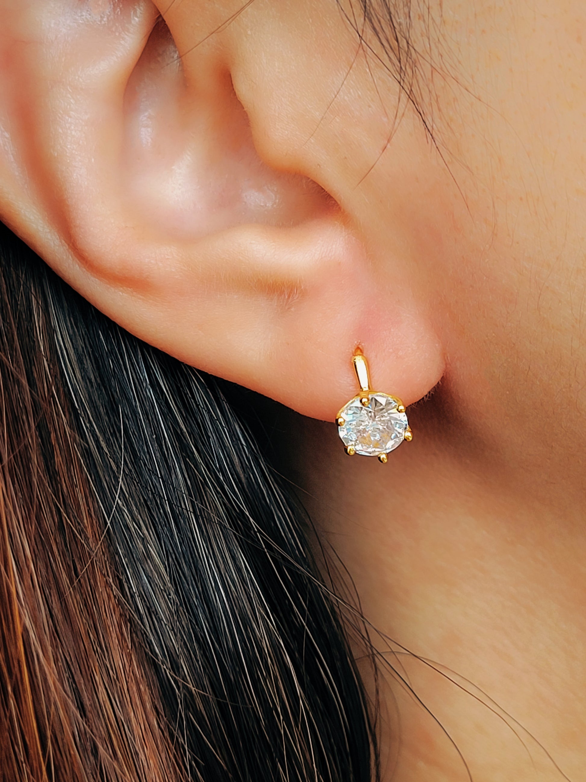 18K Gold Vermeil Solitaire Huggie Earrings