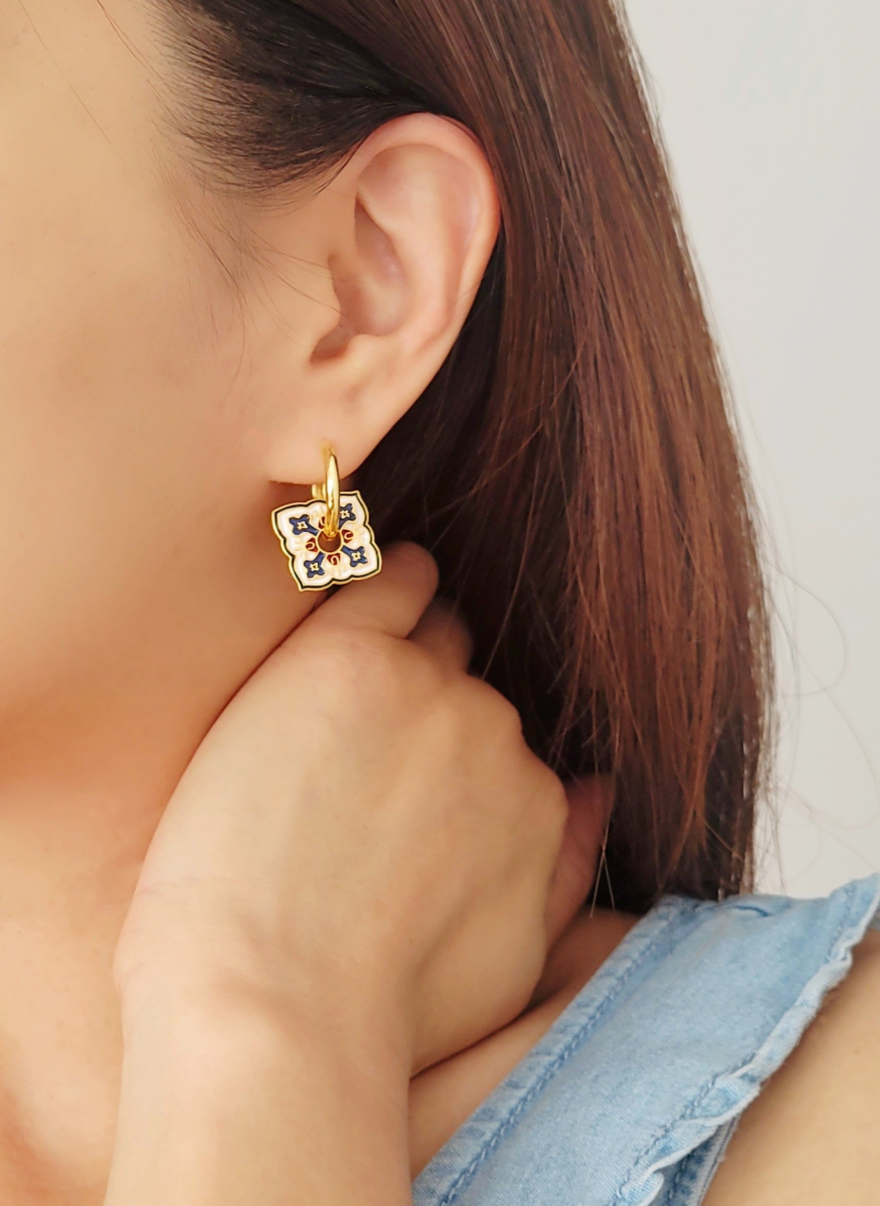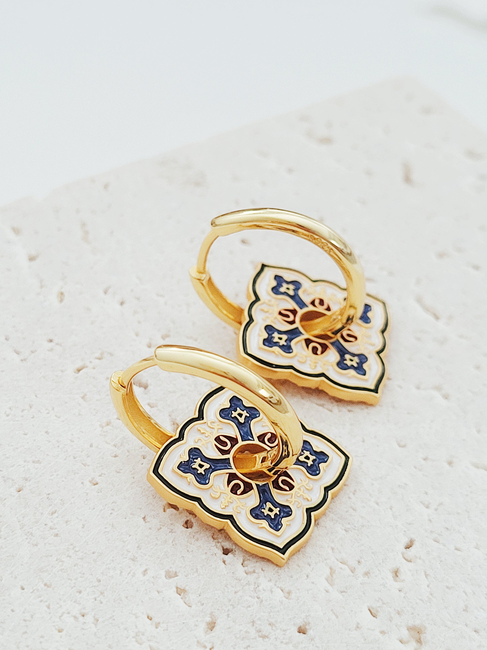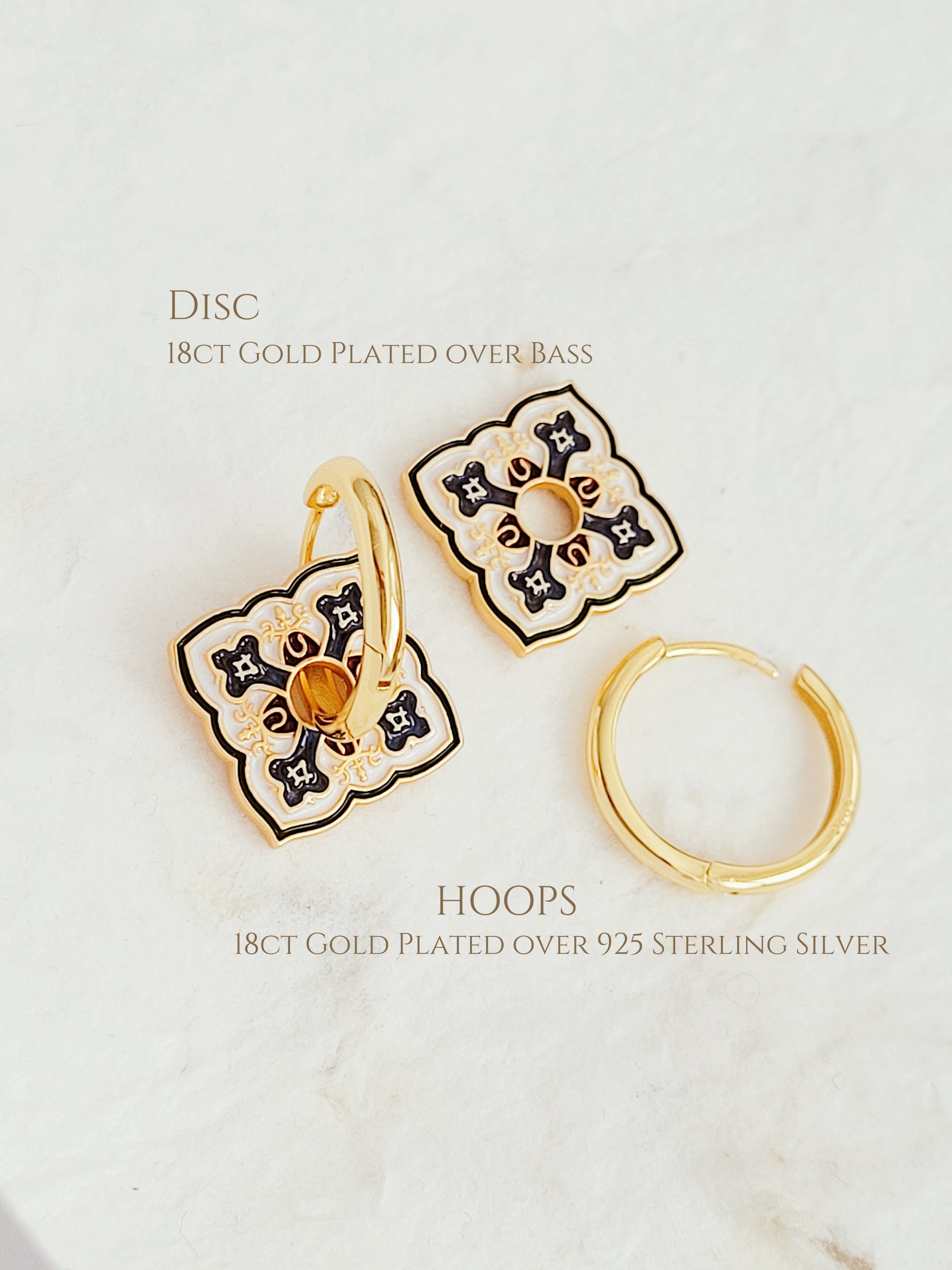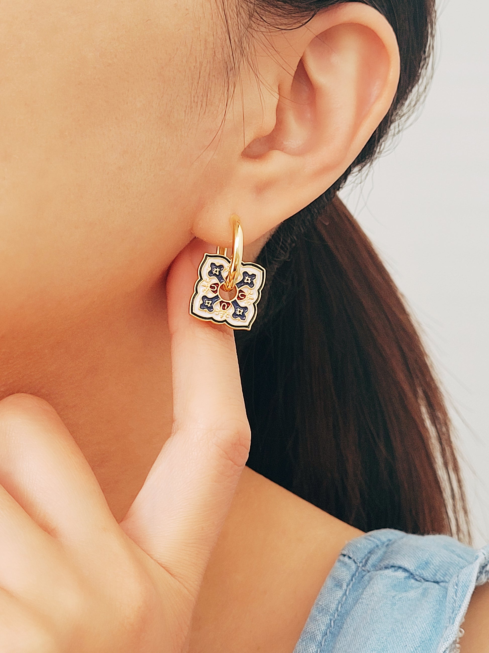Add a vintage touch of elegance to your style with these Enamel Gothic Cross Hoop Earrings. Impeccably hand-painted with intricate enamel in a traditional tile pattern, these Gothic-inspired earrings offer a unique and high-quality design. Their detailed craftsmanship showcases a retro look and attention to detail that will elevate any outfit. Enhance your wardrobe with these stunning Gothic hoop earrings.