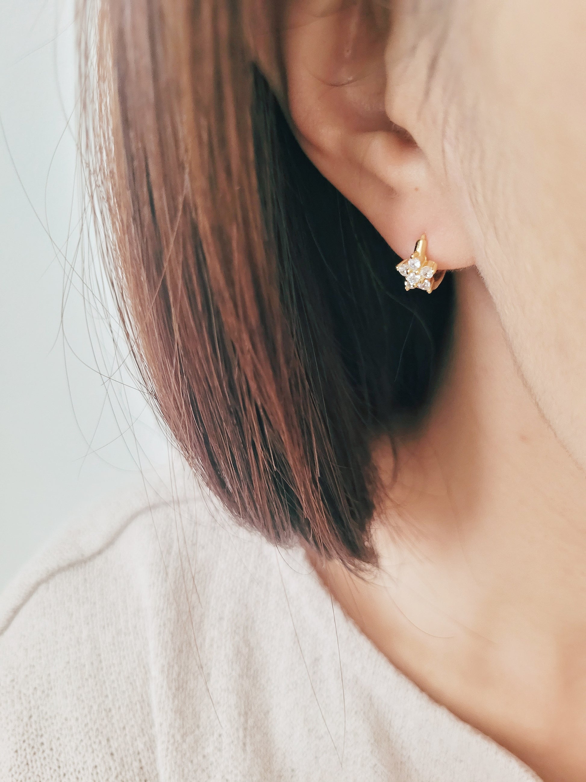 Add a touch of botanical elegance to your everyday ear stack with these Dainty Flower Huggie Earrings. Crafted for those who love delicate, vintage-inspired details, each huggie features a shimmering floral charm set with brilliant crystals that catch the light with every movement.