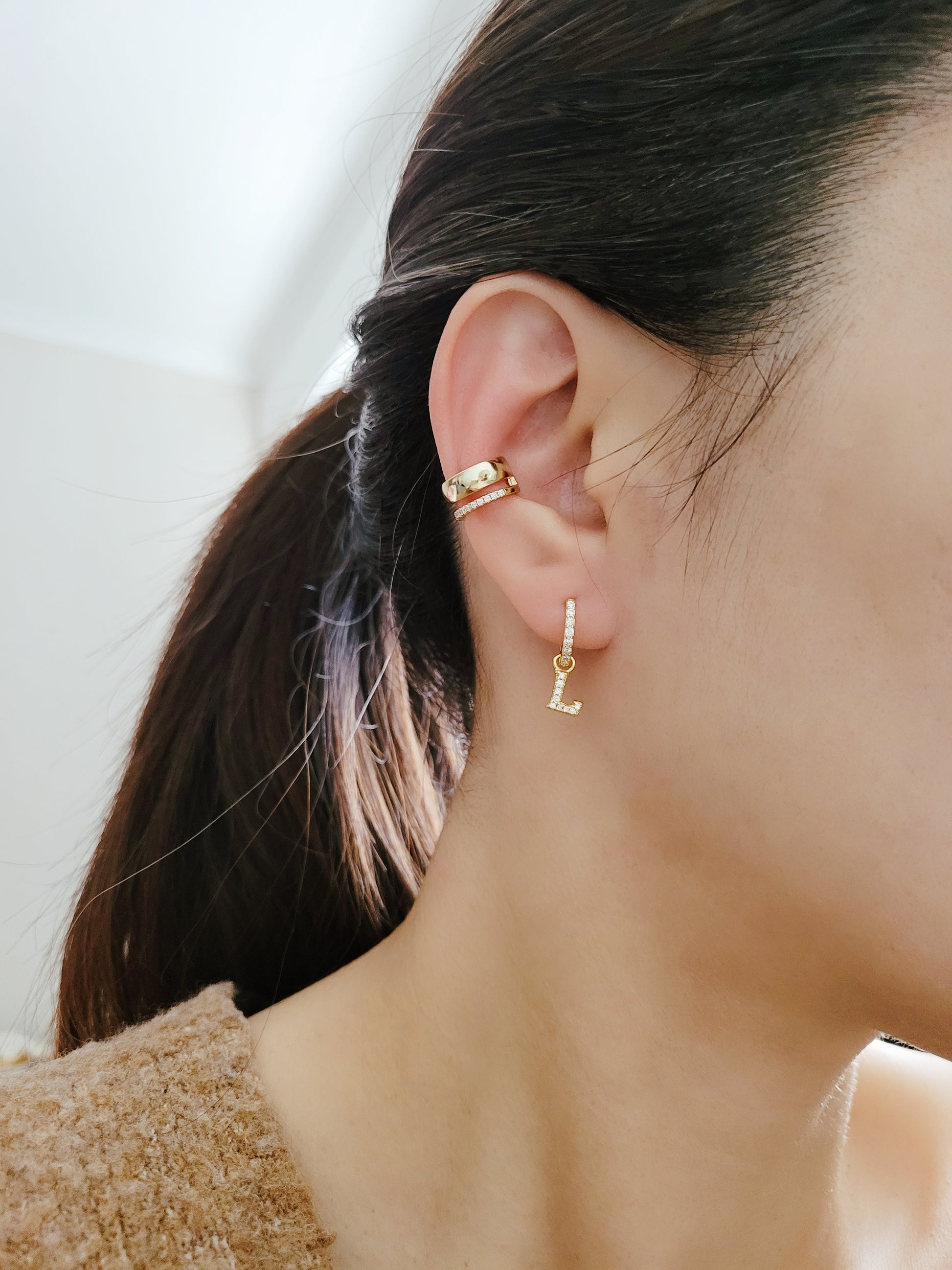 Discover a new level of elegance with Initial Huggie Hoops. These shimmering earrings are personalised with your initial, making them a one-of-a-kind accessory. Their dainty design adds a touch of sophistication to any outfit.
