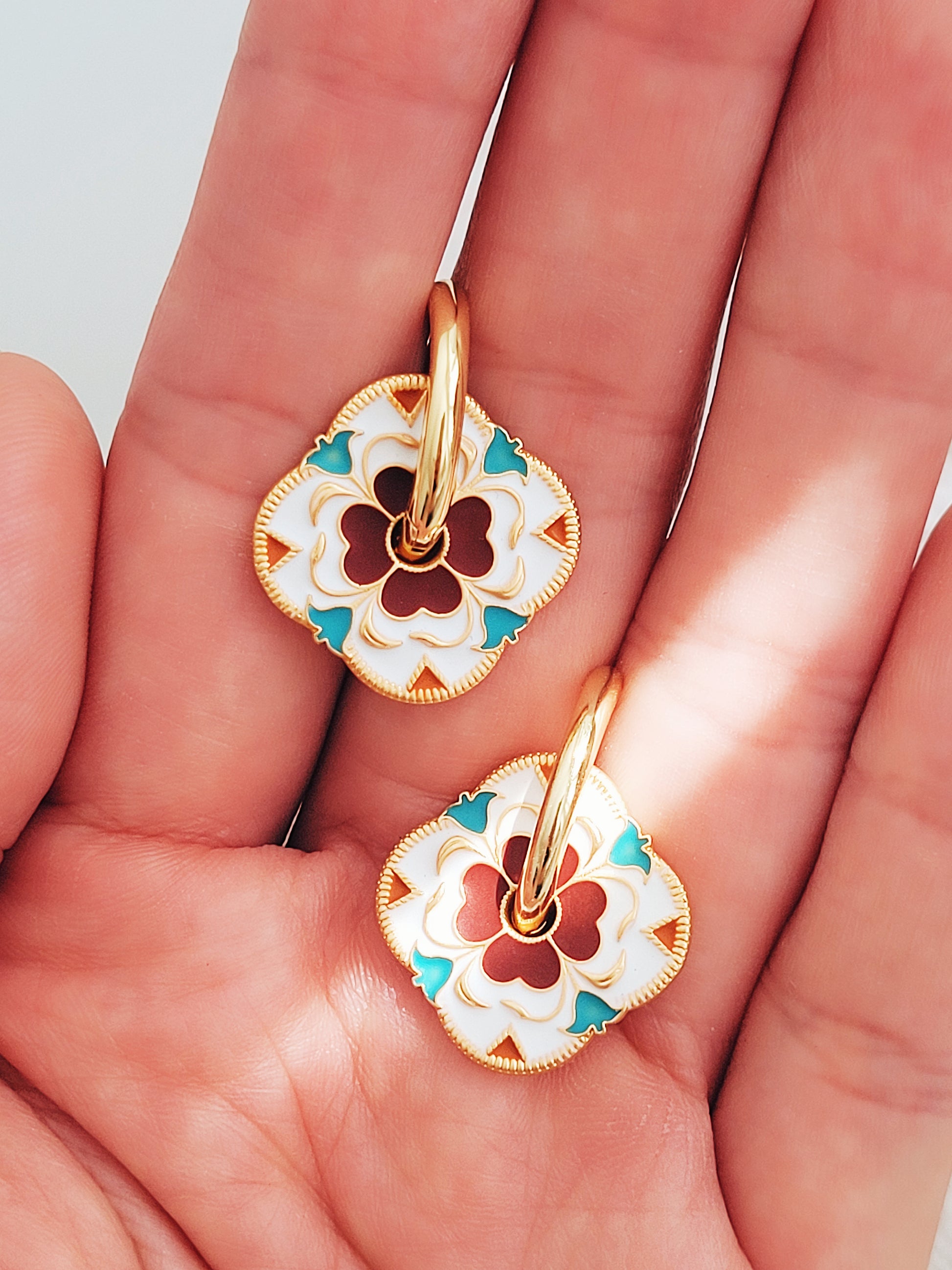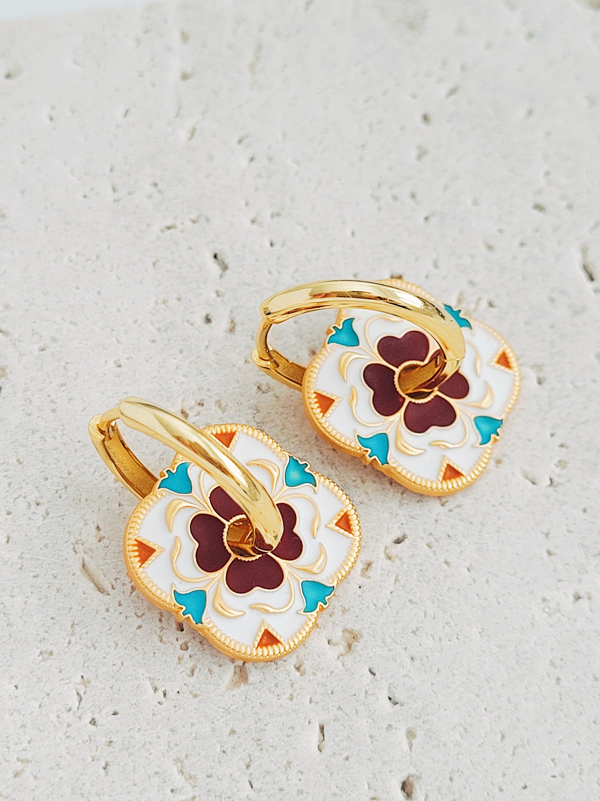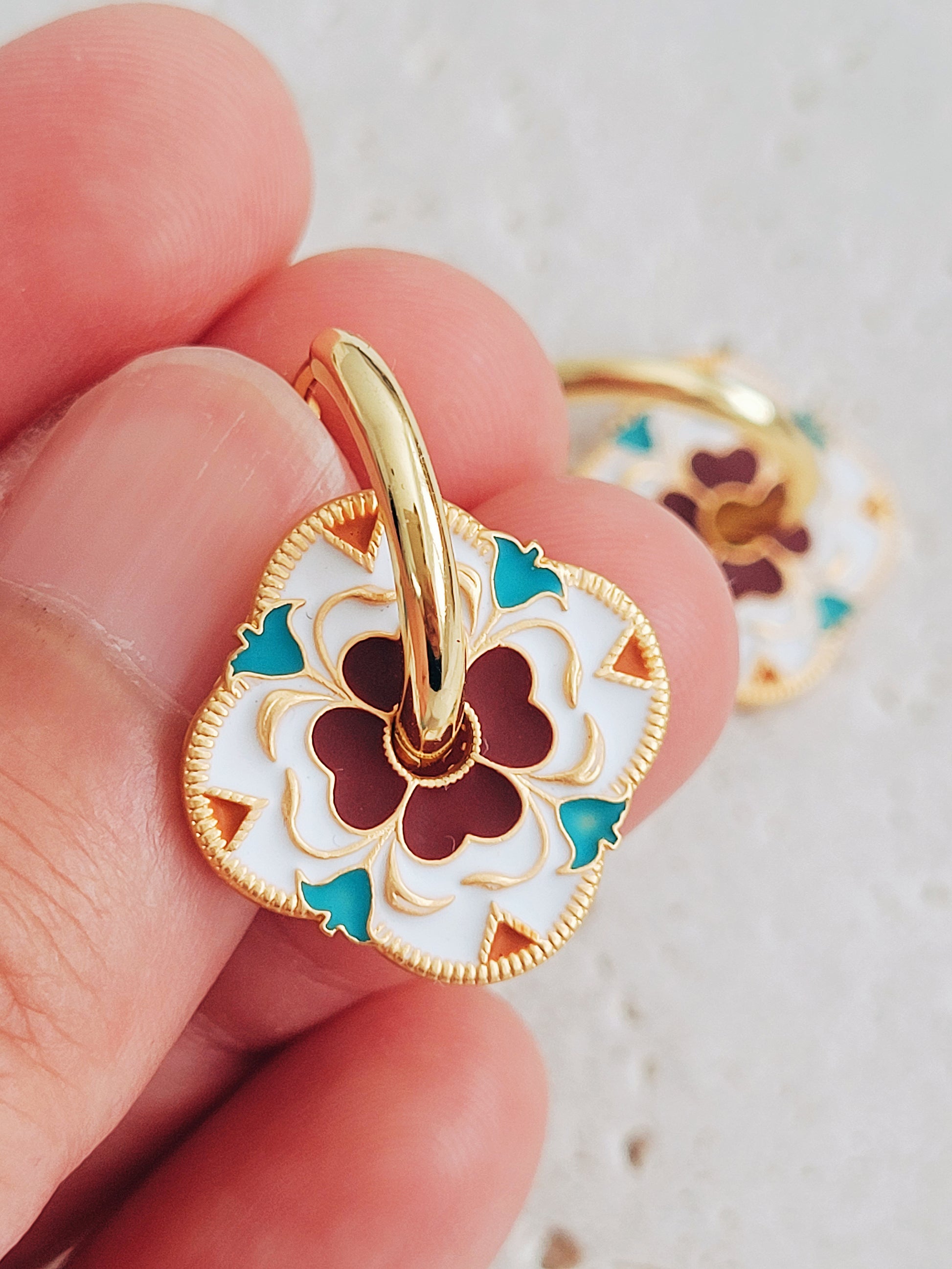 Made for the stylish and fashion-forward individual, these hoop earrings feature a timeless flower tile pattern that never goes out of trend. Each earring is carefully painted to embrace the beauty of tile details, giving you a vintage and classic look that will elevate any outfit.