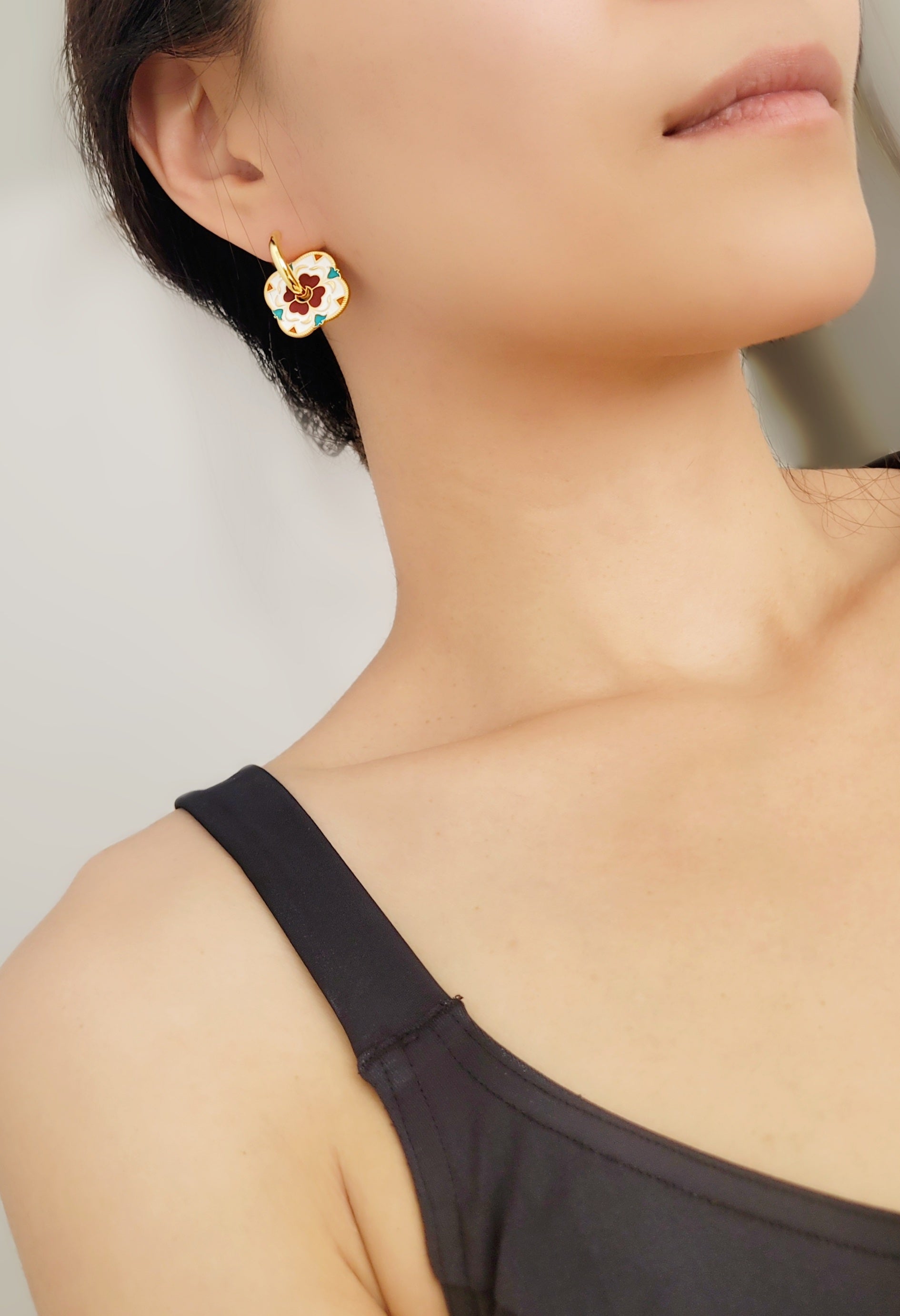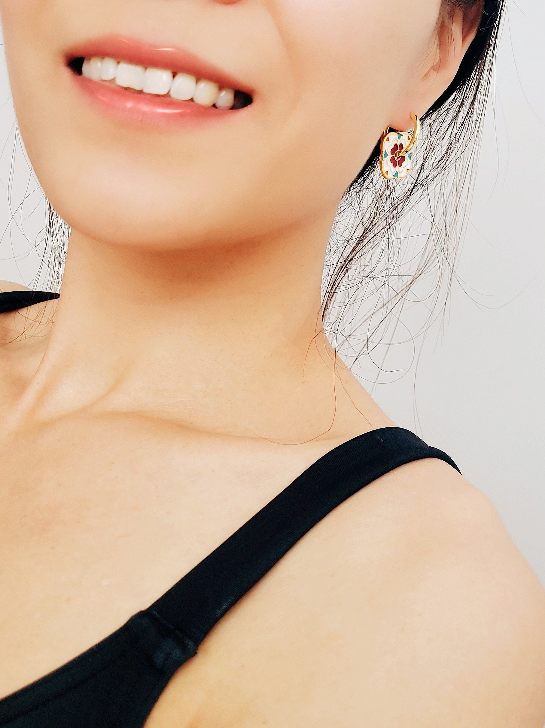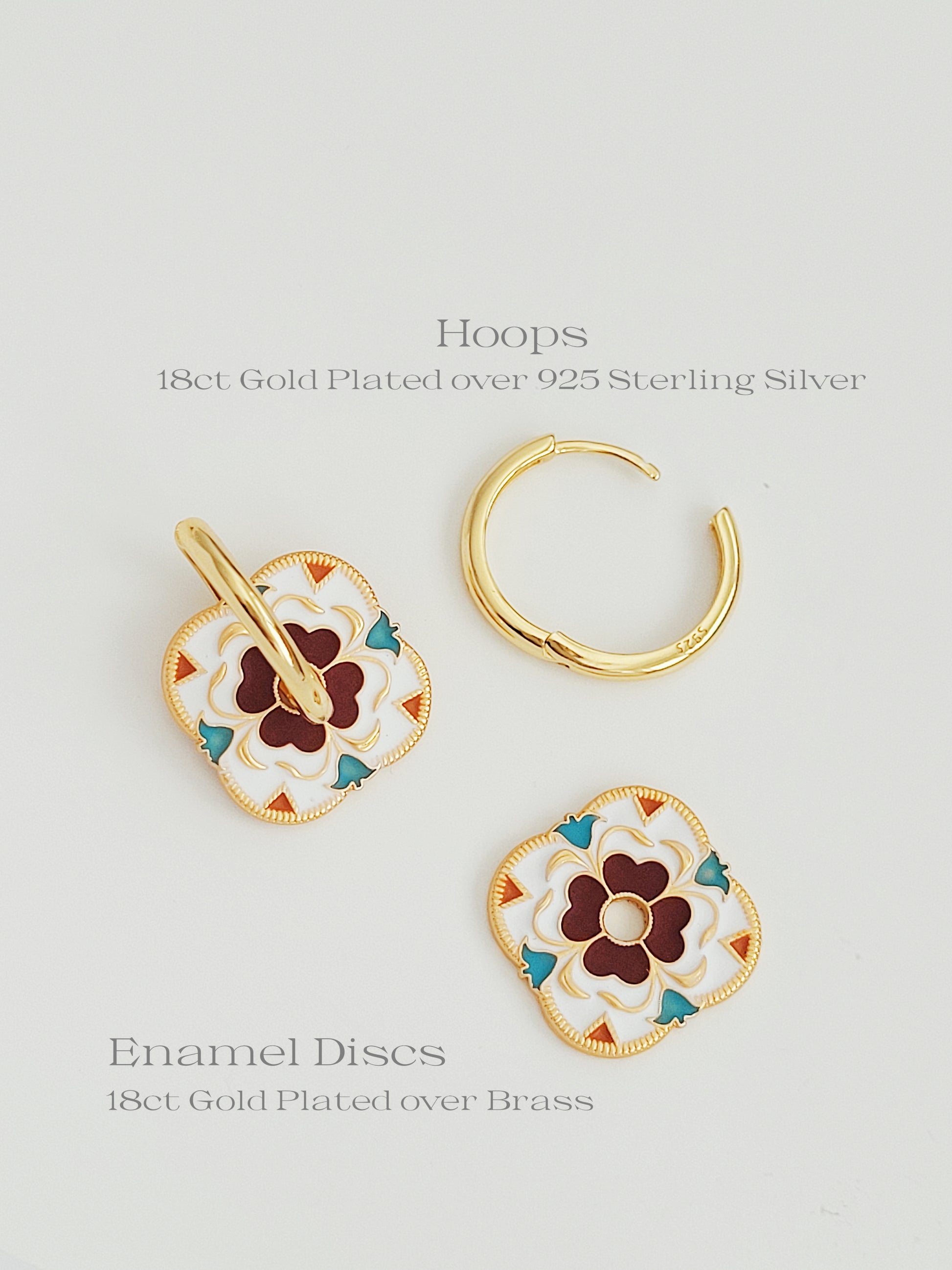 Made for the stylish and fashion-forward individual, these hoop earrings feature a timeless flower tile pattern that never goes out of trend. Each earring is carefully painted to embrace the beauty of tile details, giving you a vintage and classic look that will elevate any outfit.