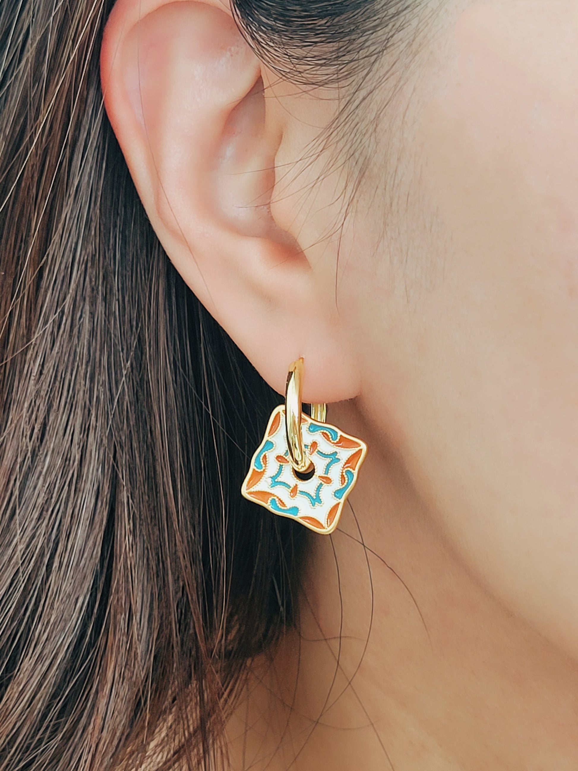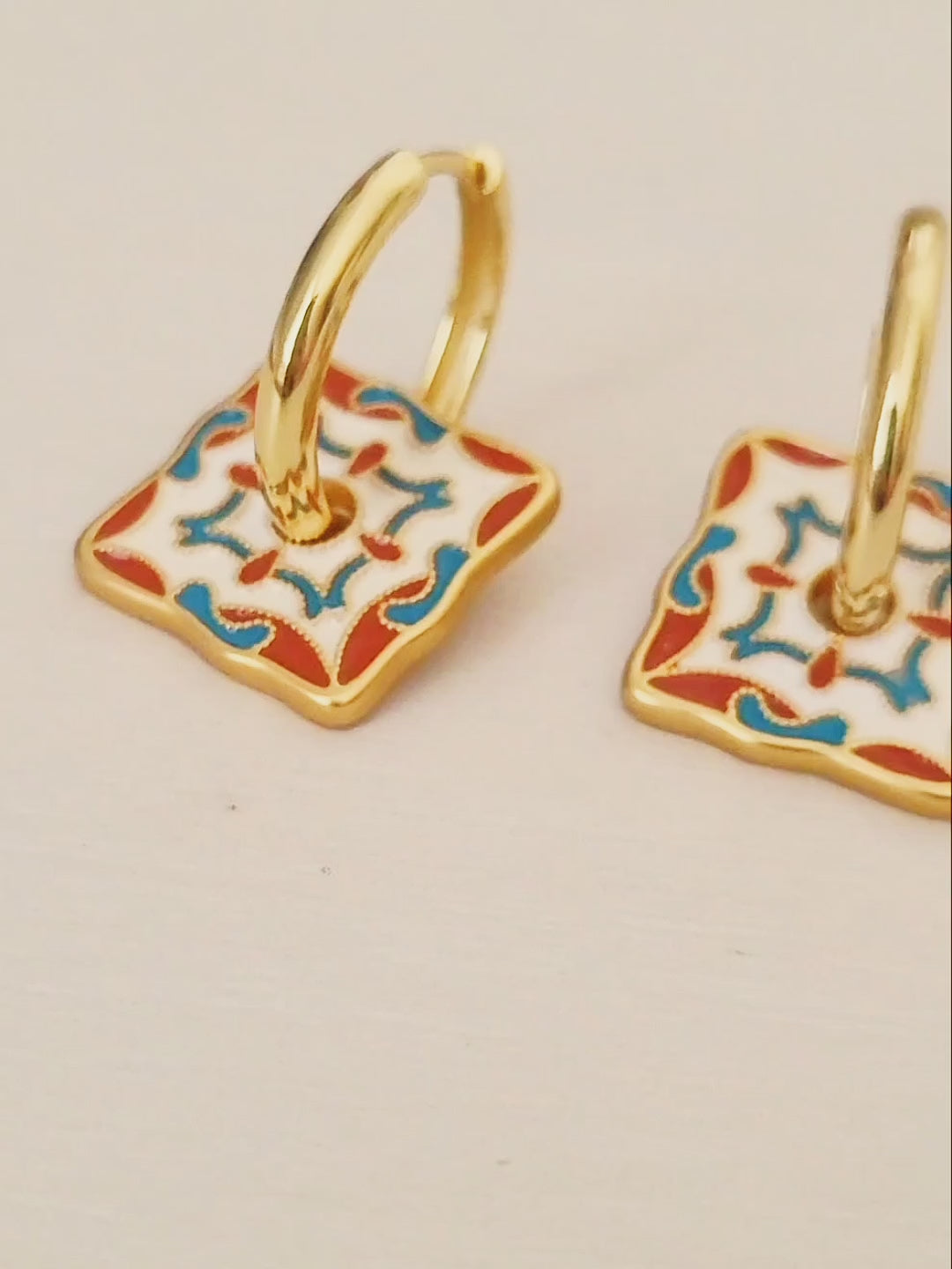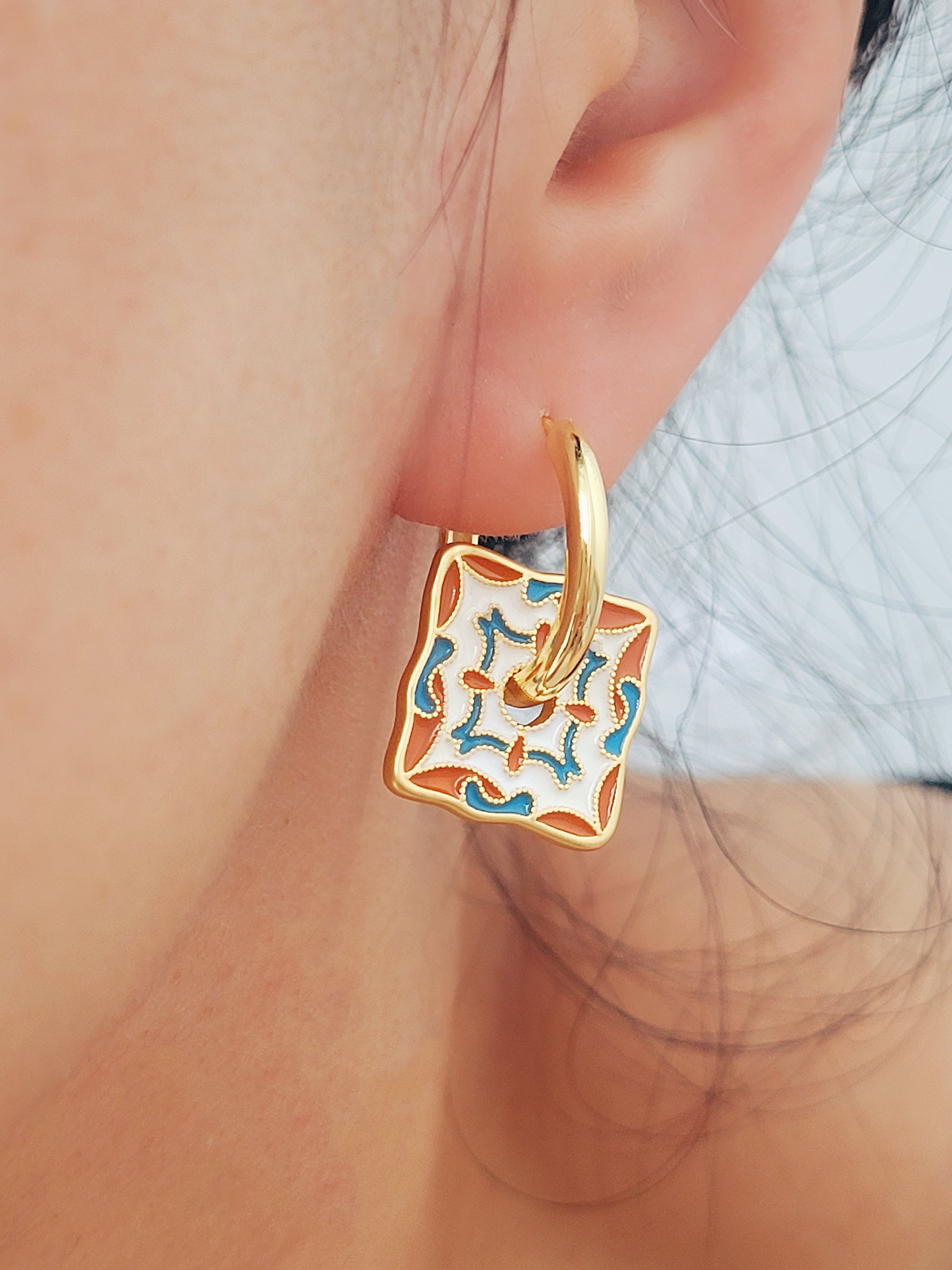 Experience retro sophistication with these beautifully handcrafted enamel earrings! Each pair is inspired by the timeless elegance of vintage ceramic tile patterns, making them more than just a piece of jewelry. The intricate hand-painted designs on high-quality brass dangle earrings will elevate any outfit and add a touch of class to your look. Don't just settle for ordinary earrings, indulge in the artistic craftsmanship and unique style of these Retro Tile Pattern Enamel Earrings.