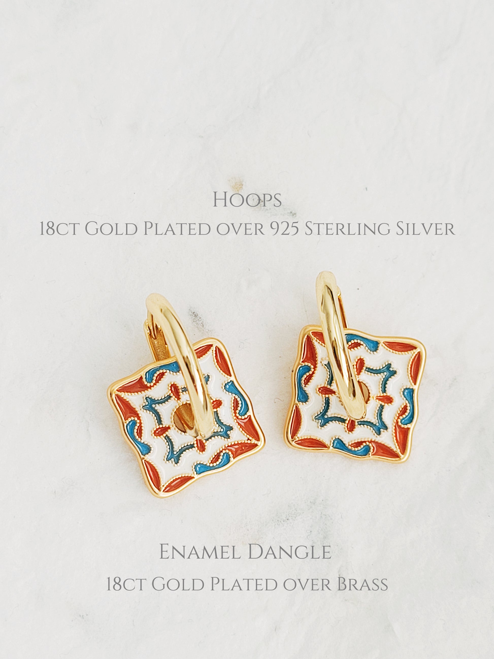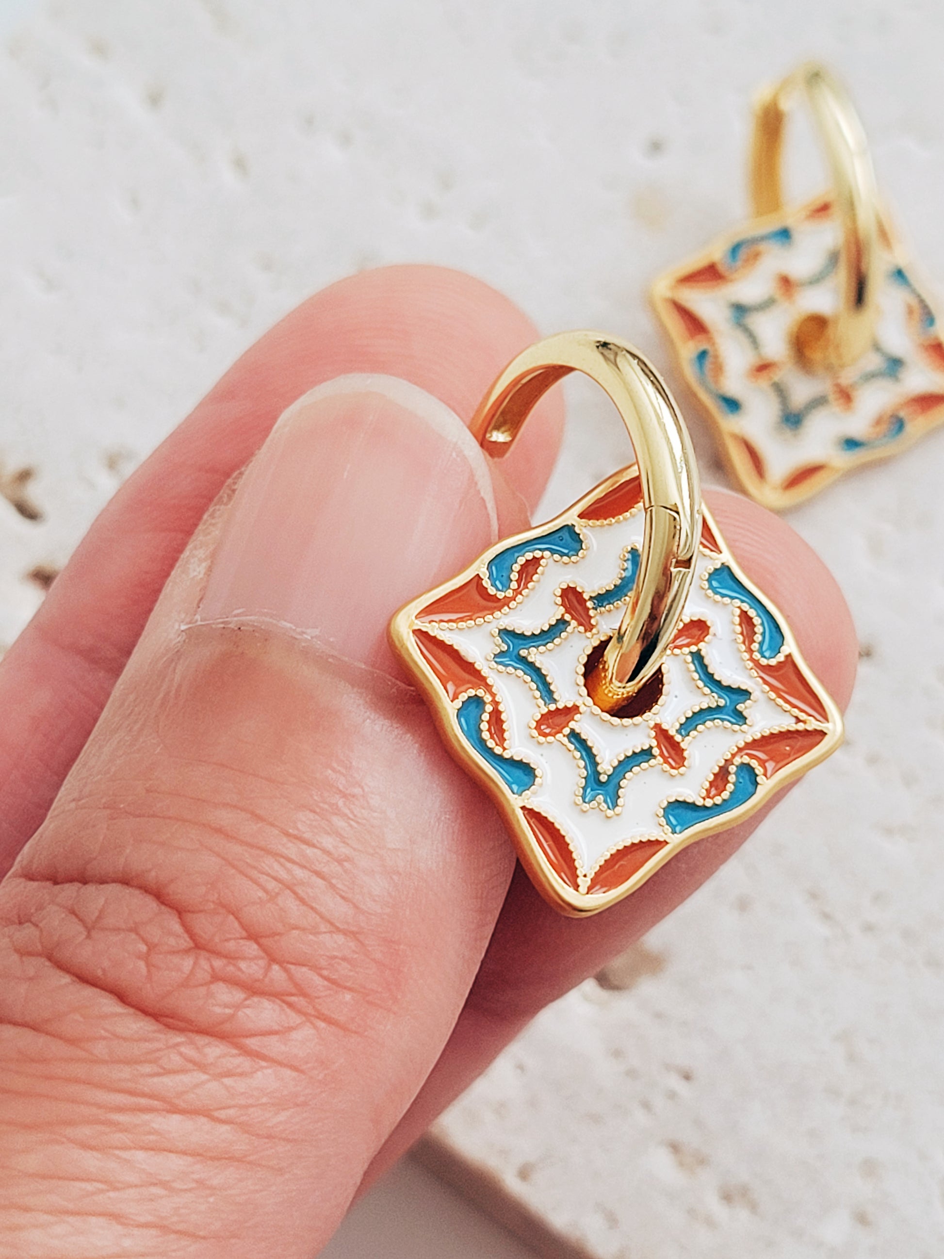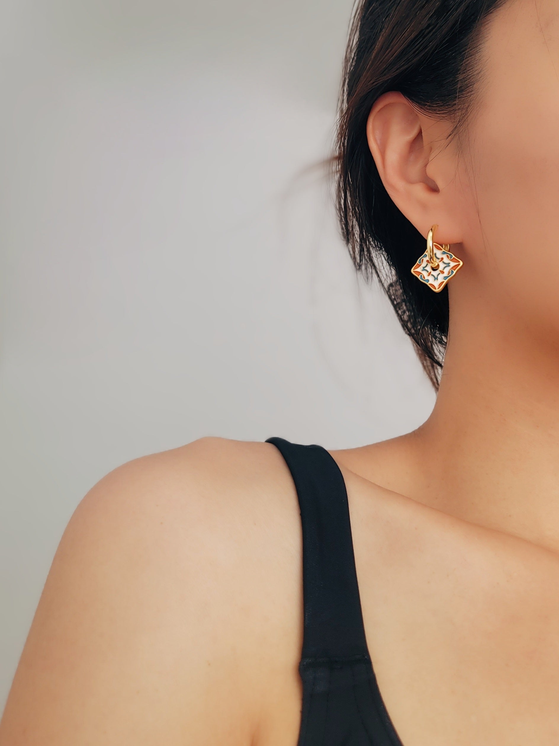 Experience retro sophistication with these beautifully handcrafted enamel earrings! Each pair is inspired by the timeless elegance of vintage ceramic tile patterns, making them more than just a piece of jewelry. The intricate hand-painted designs on high-quality brass dangle earrings will elevate any outfit and add a touch of class to your look. Don't just settle for ordinary earrings, indulge in the artistic craftsmanship and unique style of these Retro Tile Pattern Enamel Earrings.