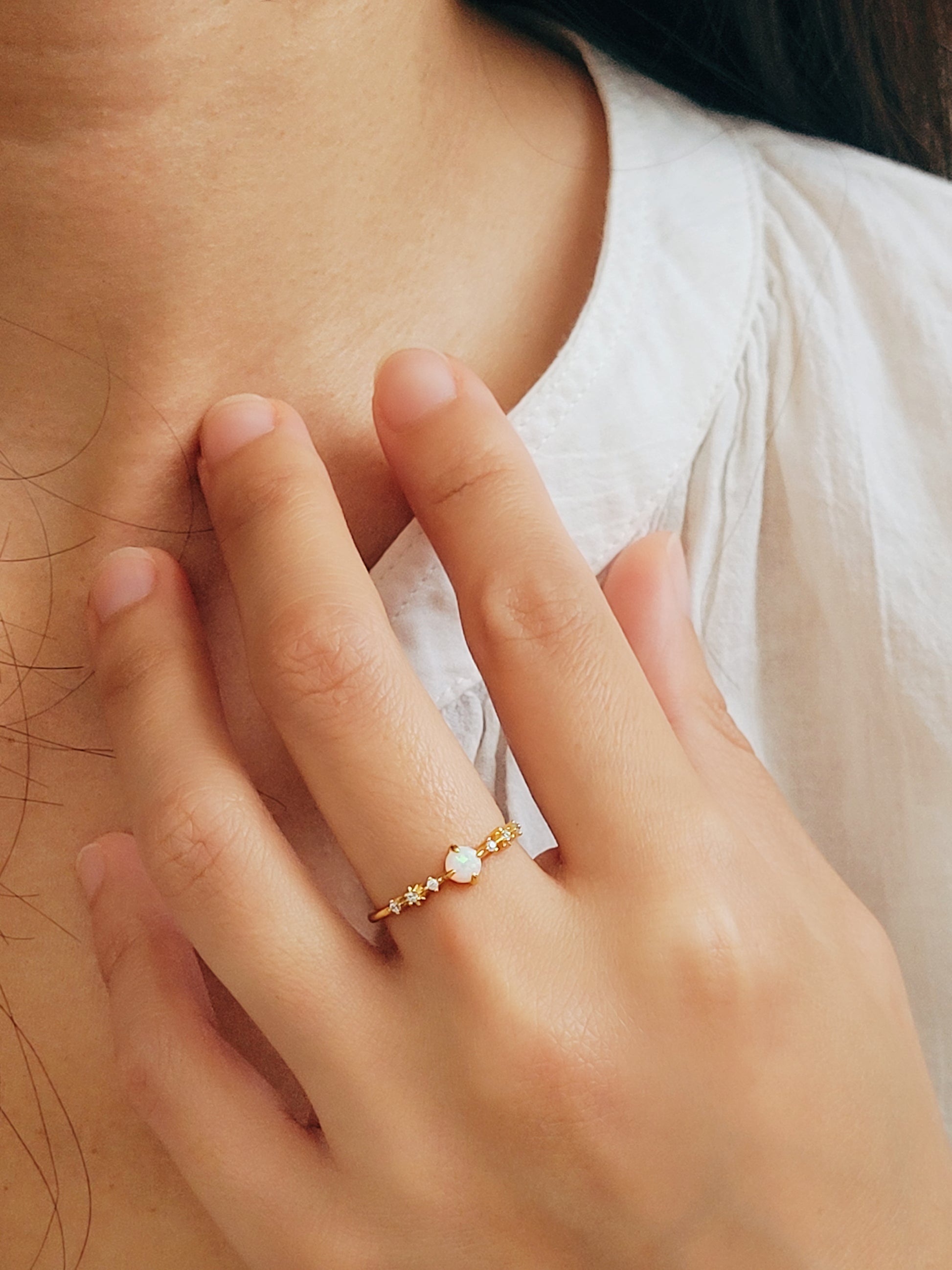 Add a touch of elegance and sparkle to any occasion with this stunning Round Opal Ring. Perfect for weddings, anniversaries, or as a promise ring, it's a timeless and delicate piece that will always make a statement. Let this ring be a symbol of your everlasting love and commitment.
