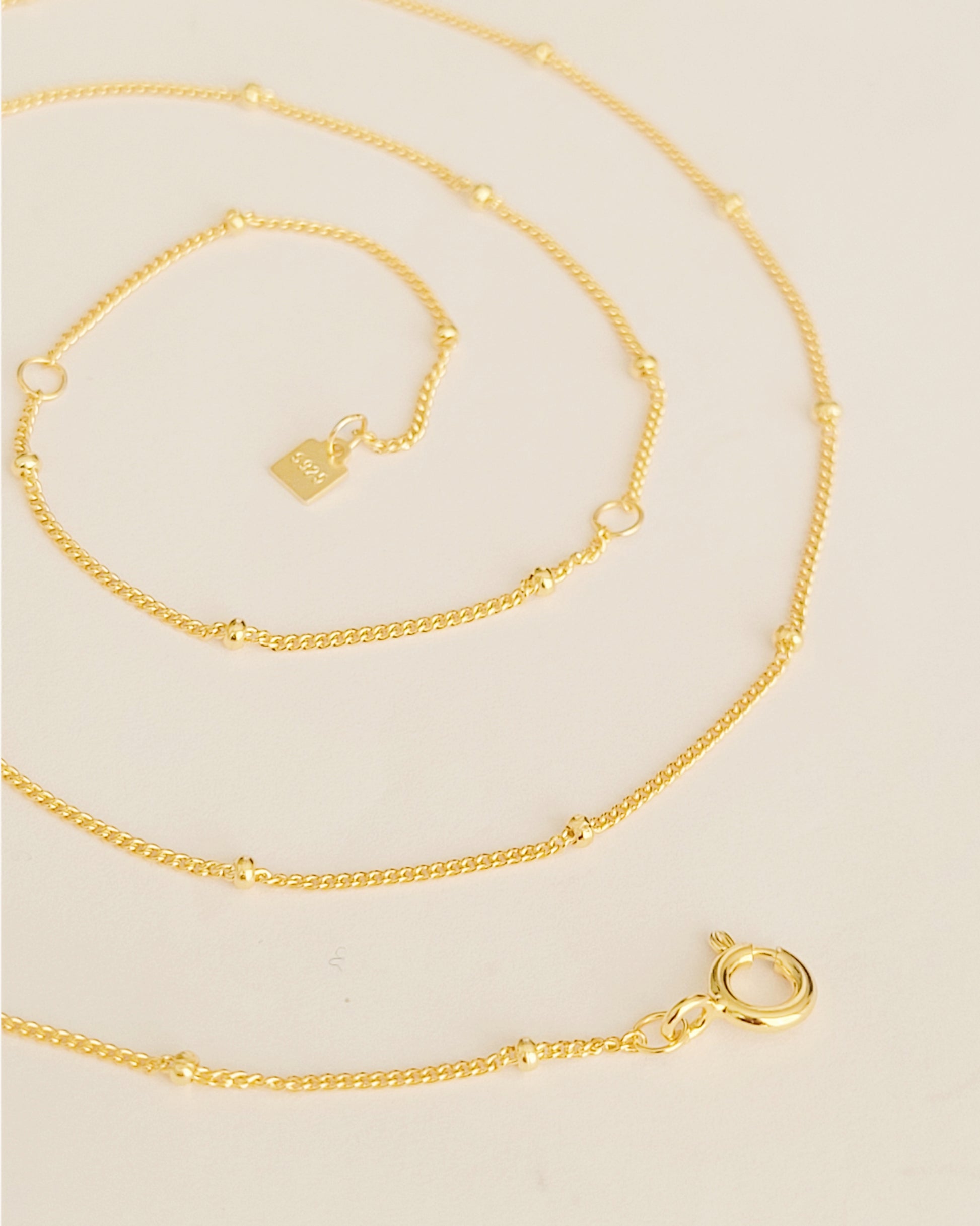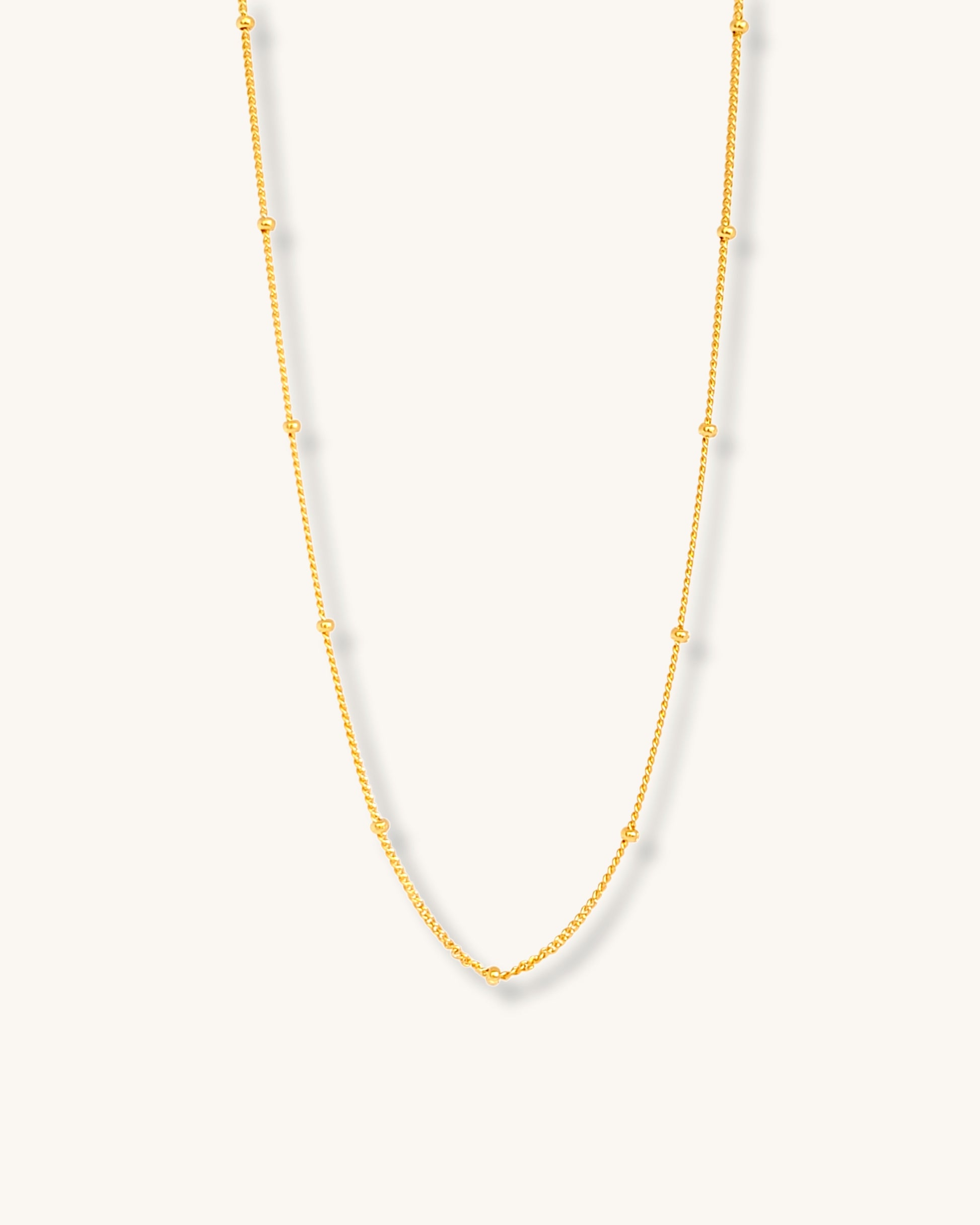 Our bead chain necklace in gold will add a touch of unique detail to your everyday look. This necklace will make the perfect layering piece or wear alone to complement every outfit! Crafted in sterling silver with 18k gold plating, this bobble chain has been crafted to the highest possible standard.