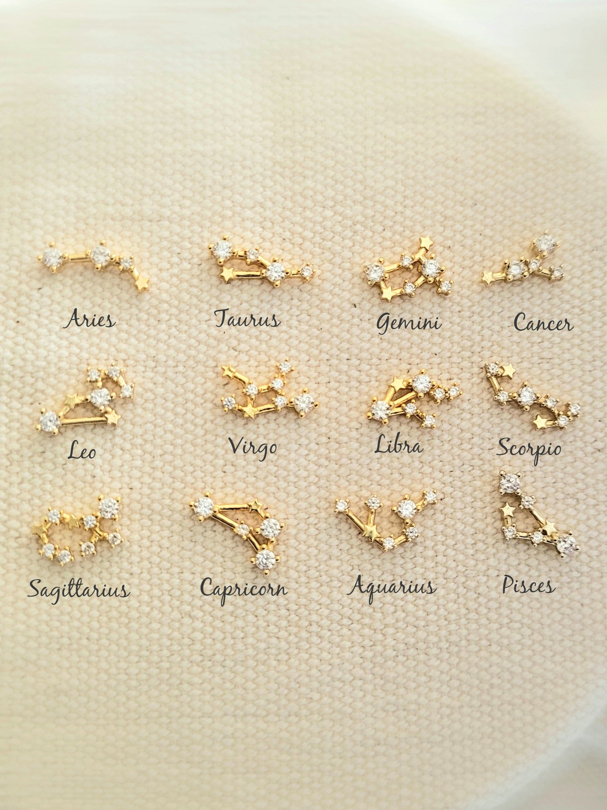 Radiate your joy, happiness and unique personalities by wearing this Starry Constellation Earring. This stunning earring features glowing zirconia stones and stars to form your star sign’s celestial constellation. Perfect to wear it alone or stack to create your own style.