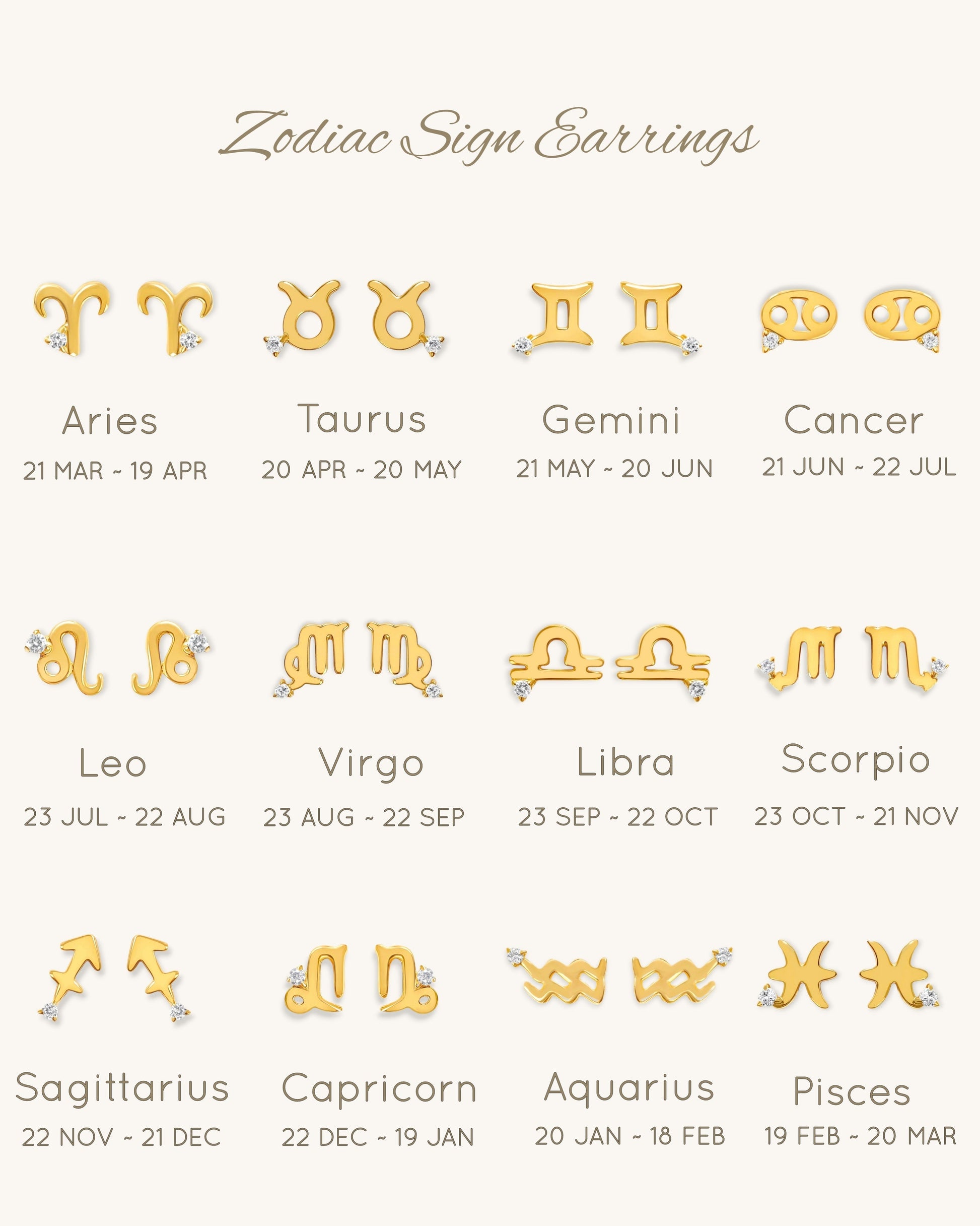 Let's get astrological. This contemporary design, featuring petite star signs and set of brilliant zirconia accent, is the only horoscope jewellery you need. Gift yourself and your loved ones for personalized feels. Created for you in 925 sterling silver with 18ct gold plating, you'll want to wear these fine earrings always and never take them off, even when swimming or in the shower.