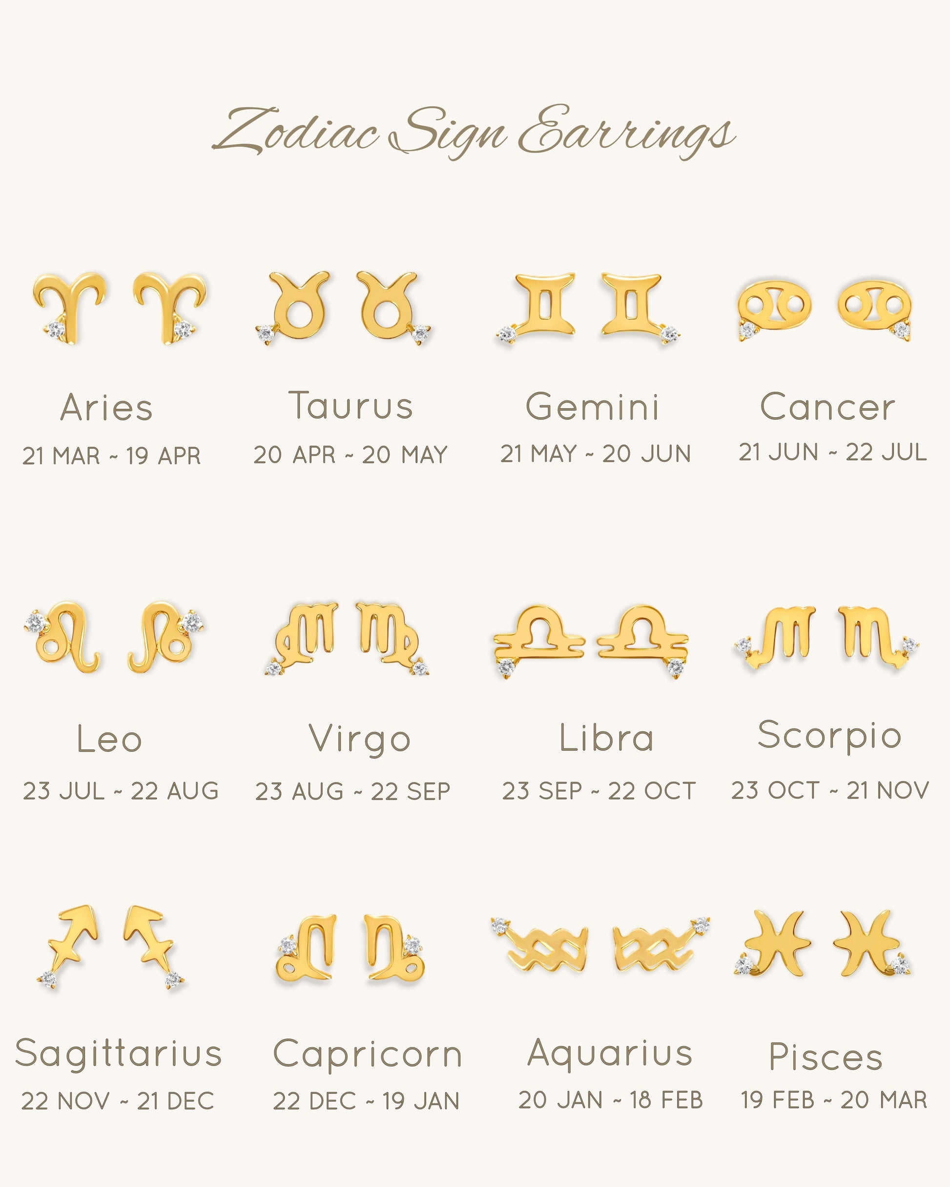 Let's get astrological. This contemporary design, featuring petite star signs and set of brilliant zirconia accent, is the only horoscope jewellery you need. Gift yourself and your loved ones for personalized feels. Created for you in 925 sterling silver with 18ct gold plating, you'll want to wear these fine earrings always and never take them off, even when swimming or in the shower.