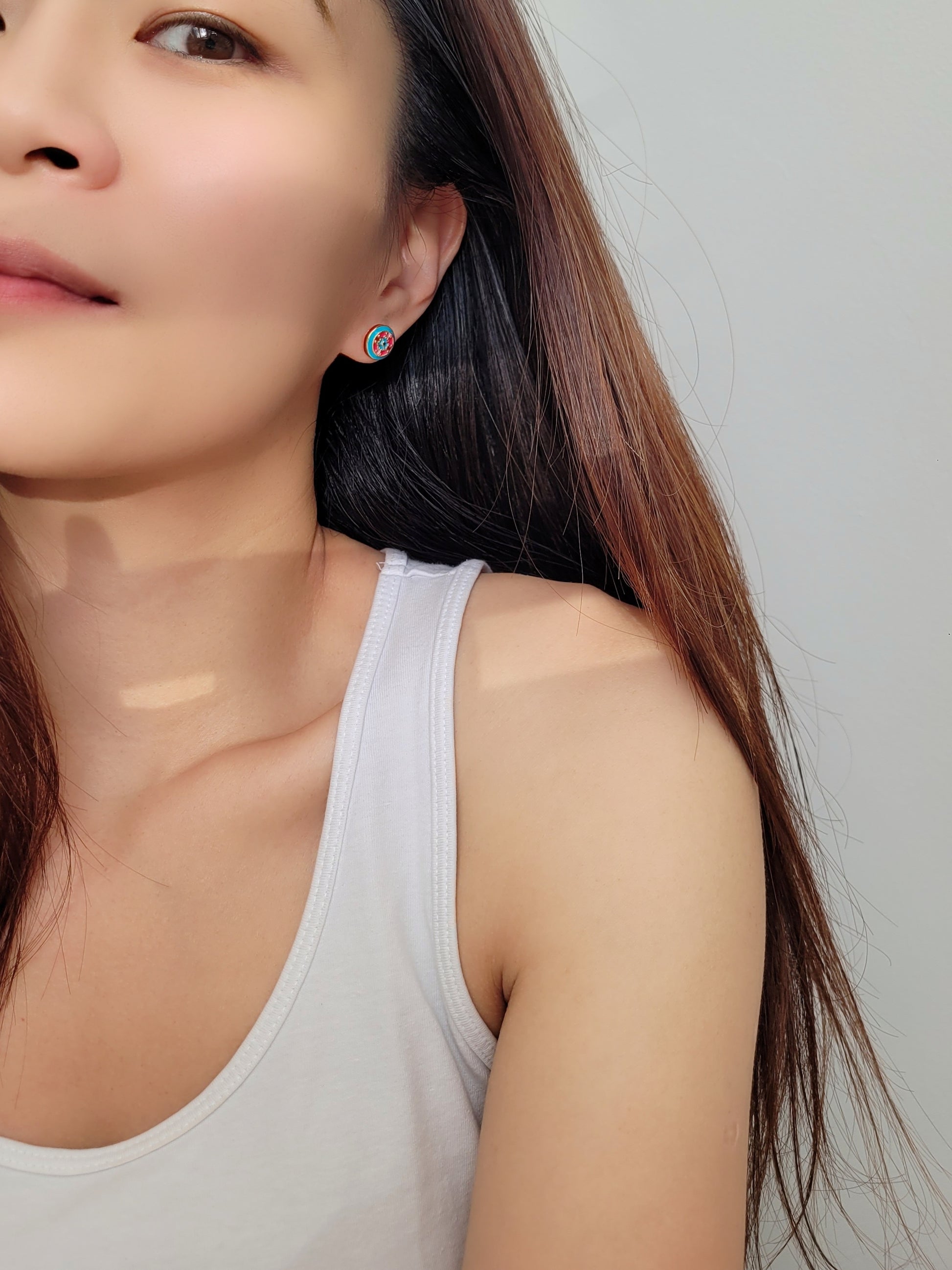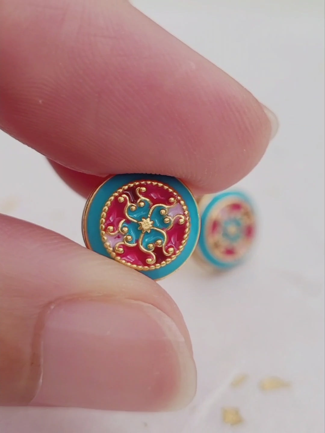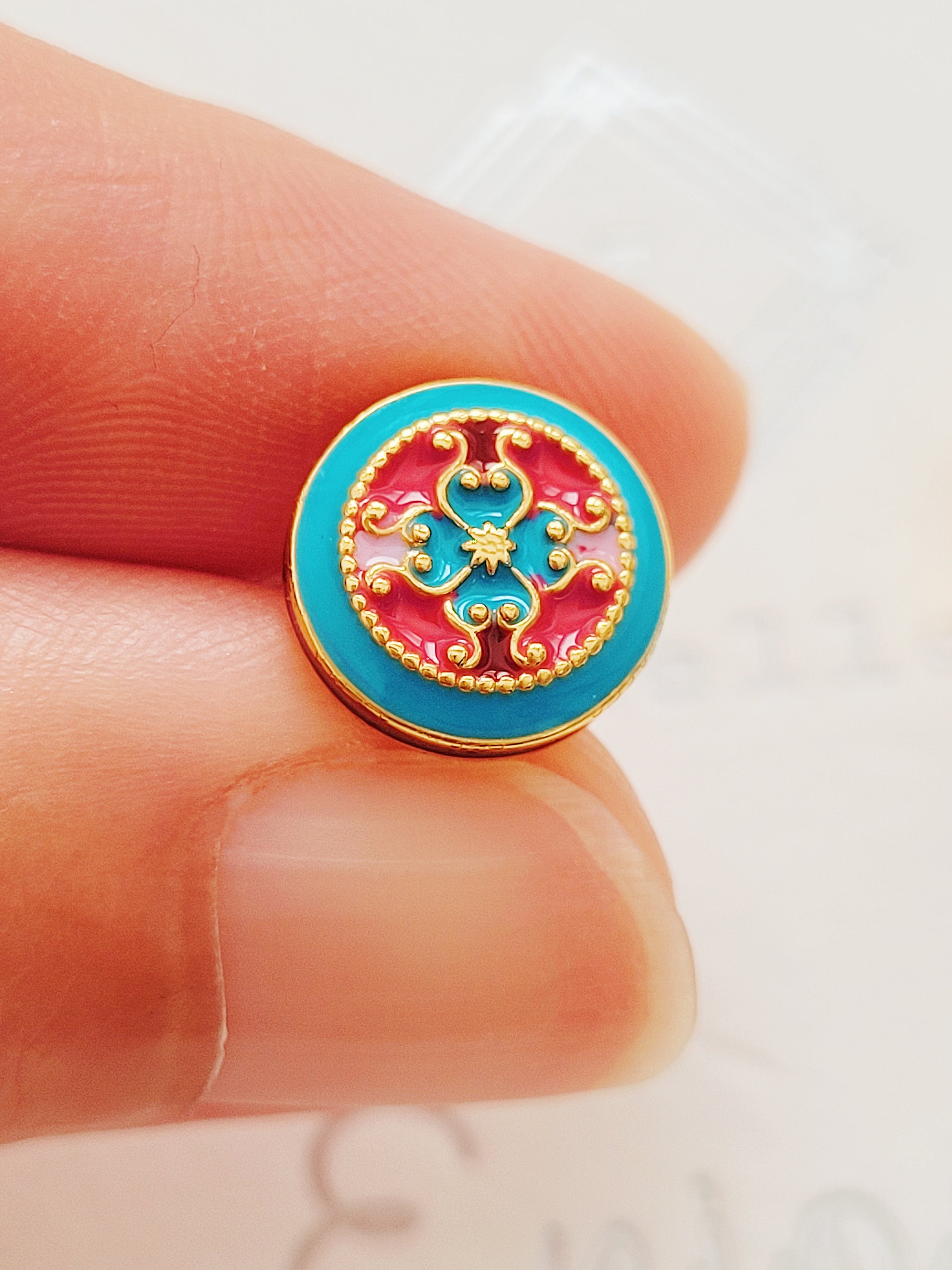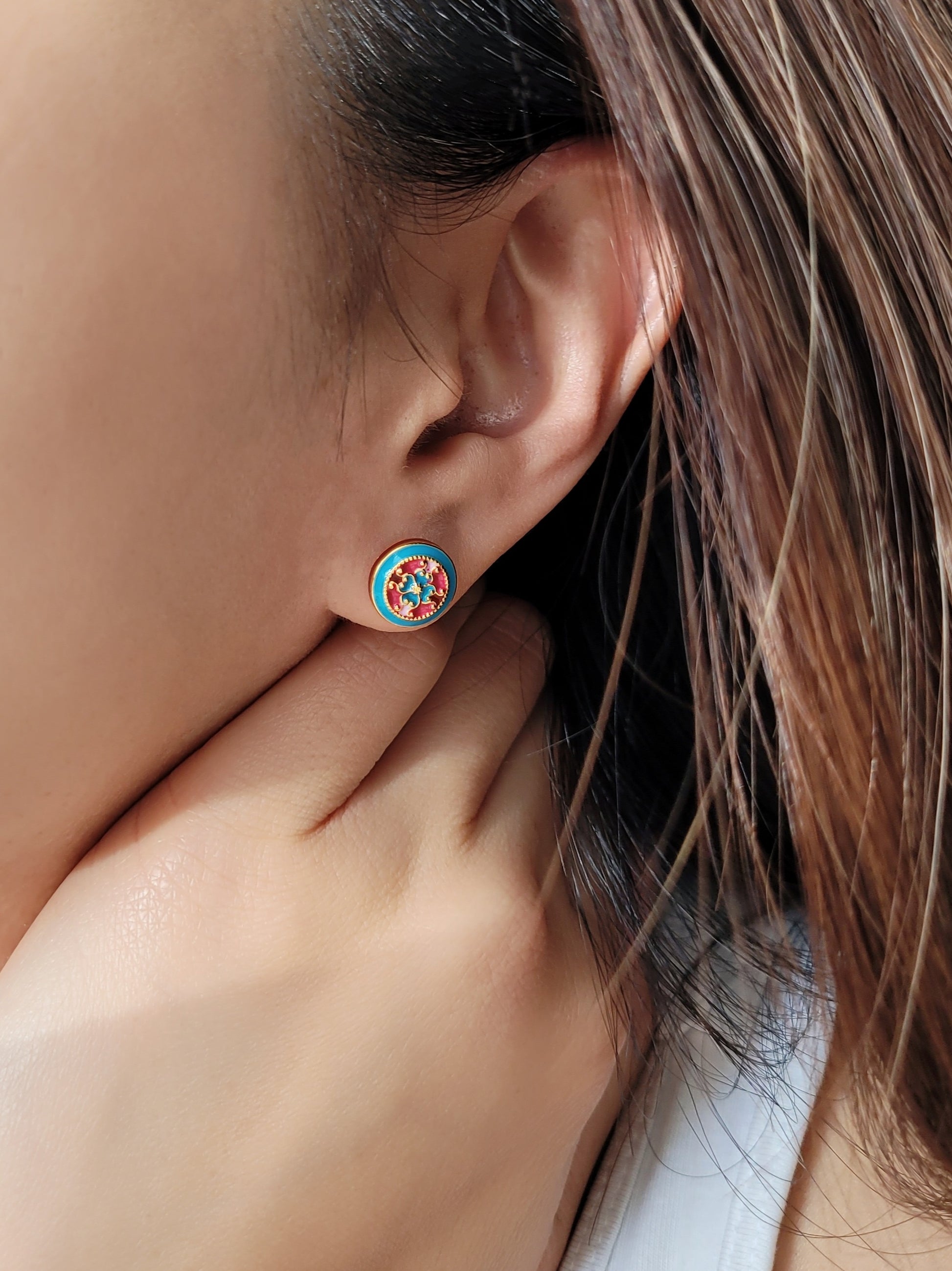 Bring a touch of retro flair to your wardrobe with these vibrant hand-painted enamel earrings featuring a unique vintage tile pattern! Add a pop of color and style to any outfit with these modern statement pieces. No need to worry about them going out of style - their timeless design will always be in fashion!
