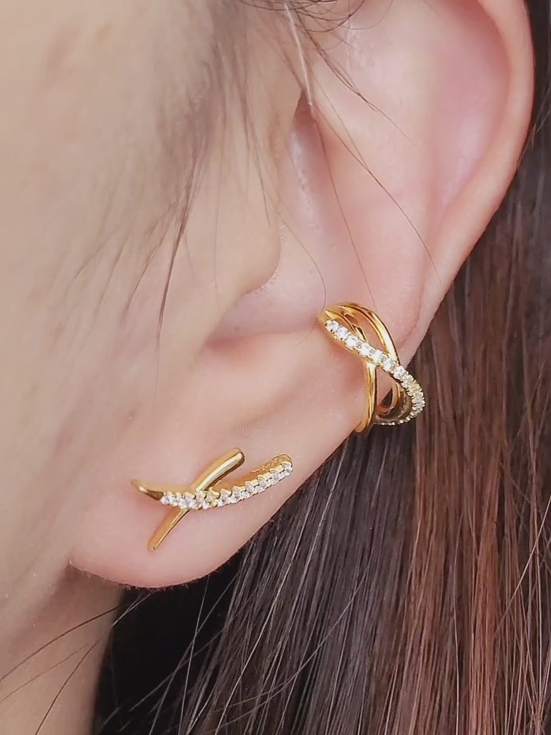 Ride the fashion wave with this Triple Pave Ear Cuff in gold, effortlessly elevate your style and elegance. This stunning ear cuff takes your stack to the next level with triple wavy lines crafted in high quality 925 sterling silver and a touch of 18ct gold plating. Say goodbye to boring and hello to beautiful with this must-have accessory. It's the perfect way to elevate your stack to the next level!